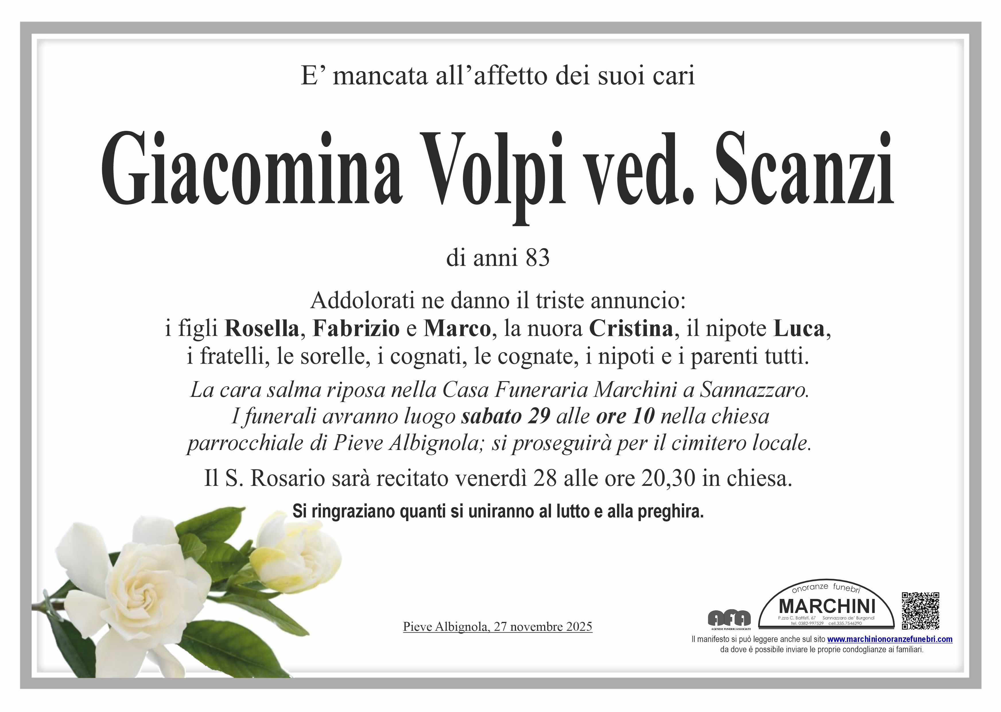 Home page \ I necrologi \ GIACOMINA VOLPI