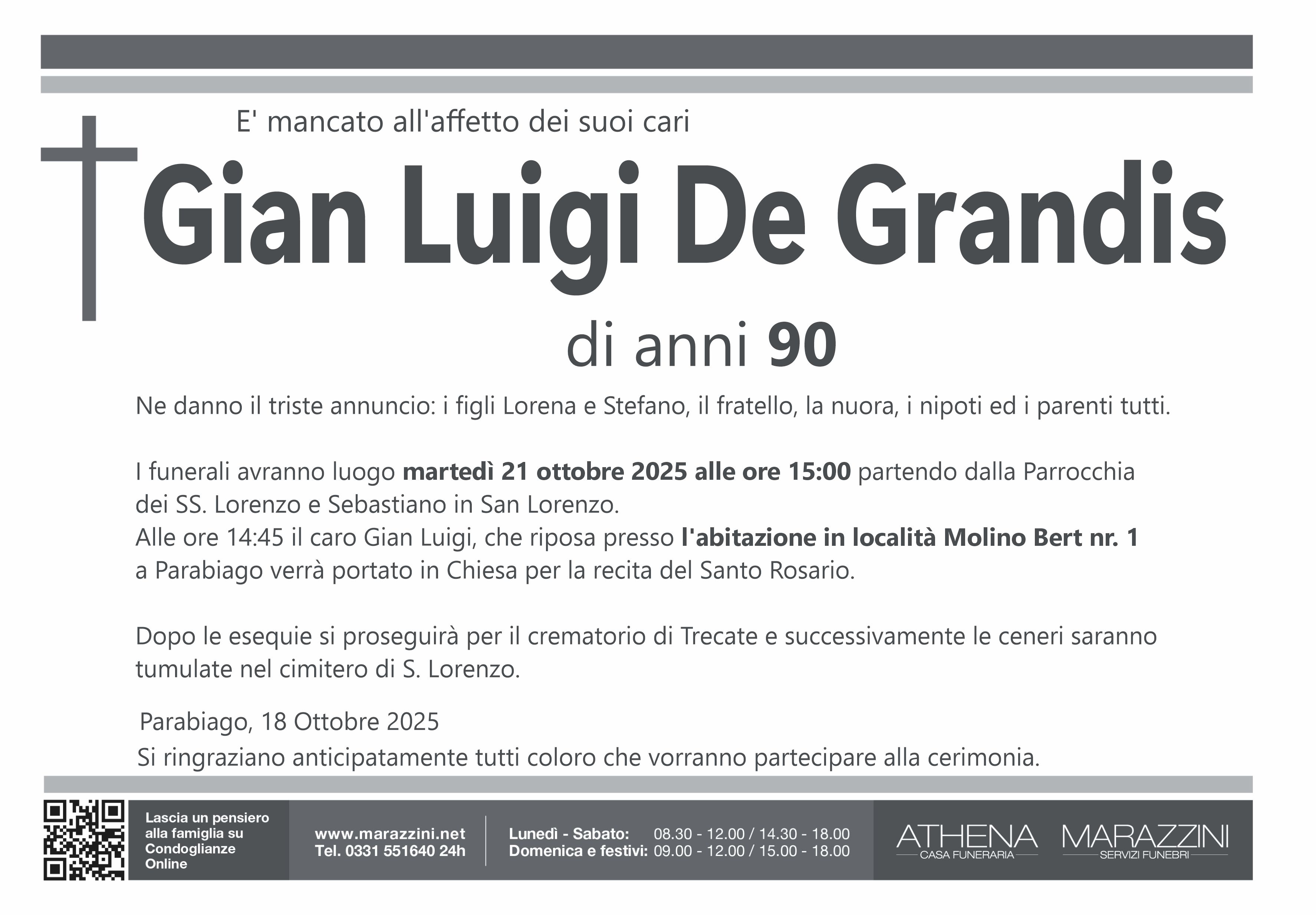 Home page \ I necrologi \ GIAN LUIGI DE GRANDIS