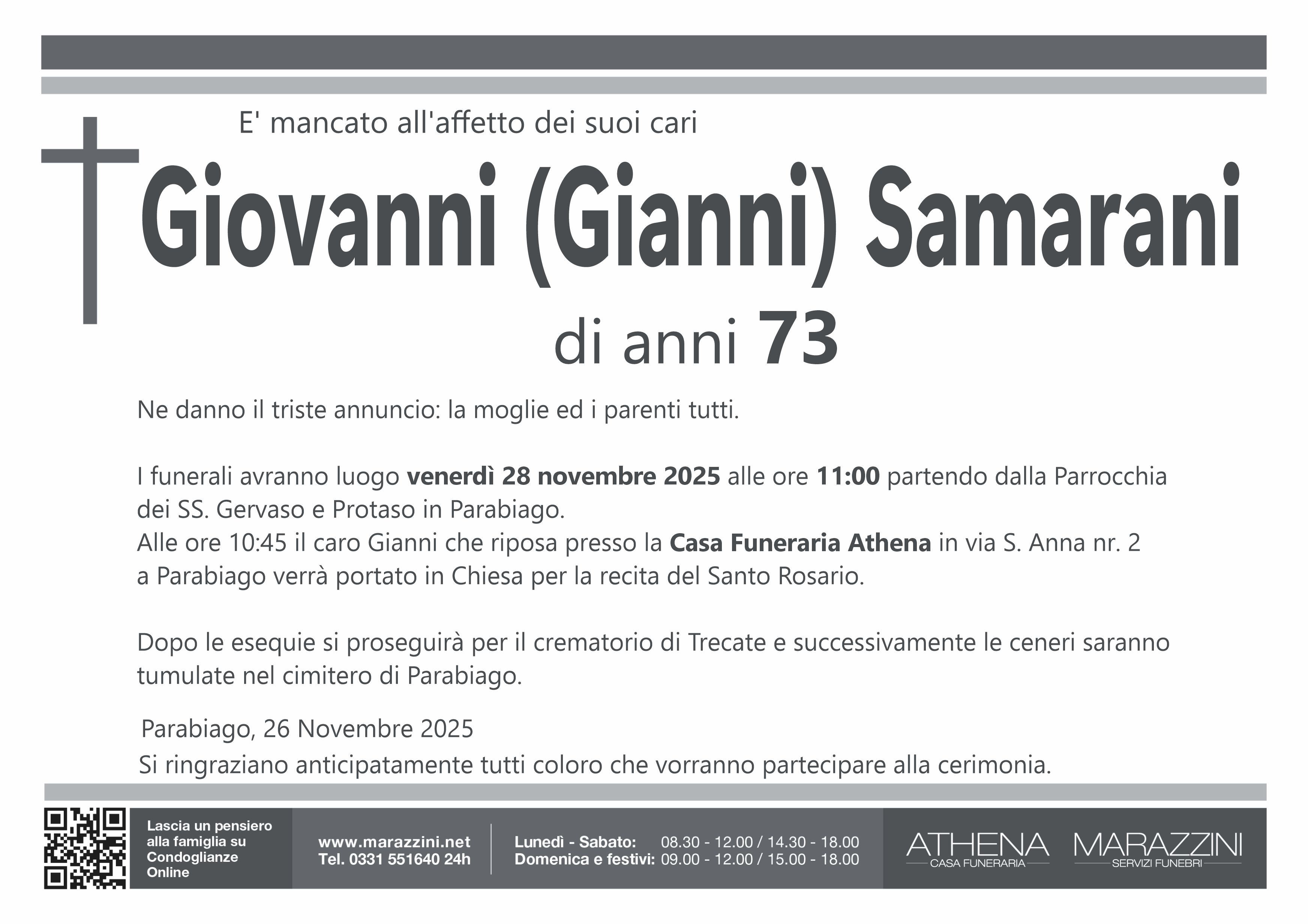 Home page \ I necrologi \ GIOVANNI SAMARANI