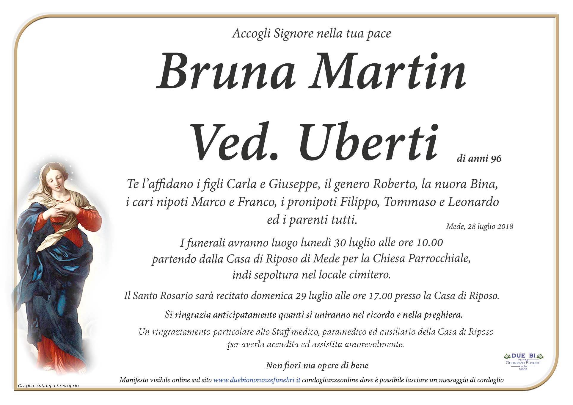 Home page \ I necrologi \ BRUNA MARTIN