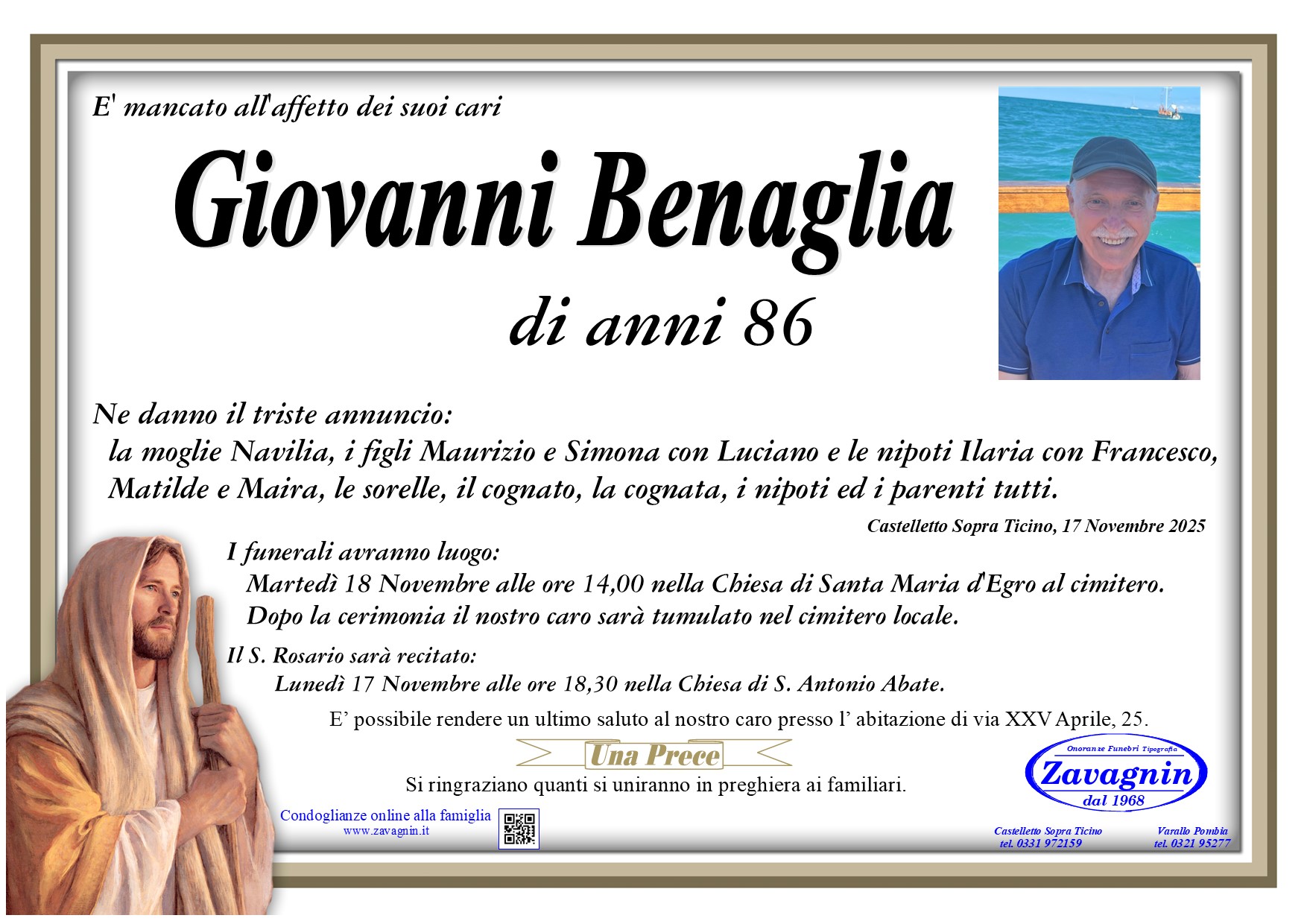 Home page \ I necrologi \ GIOVANNI BENAGLIA