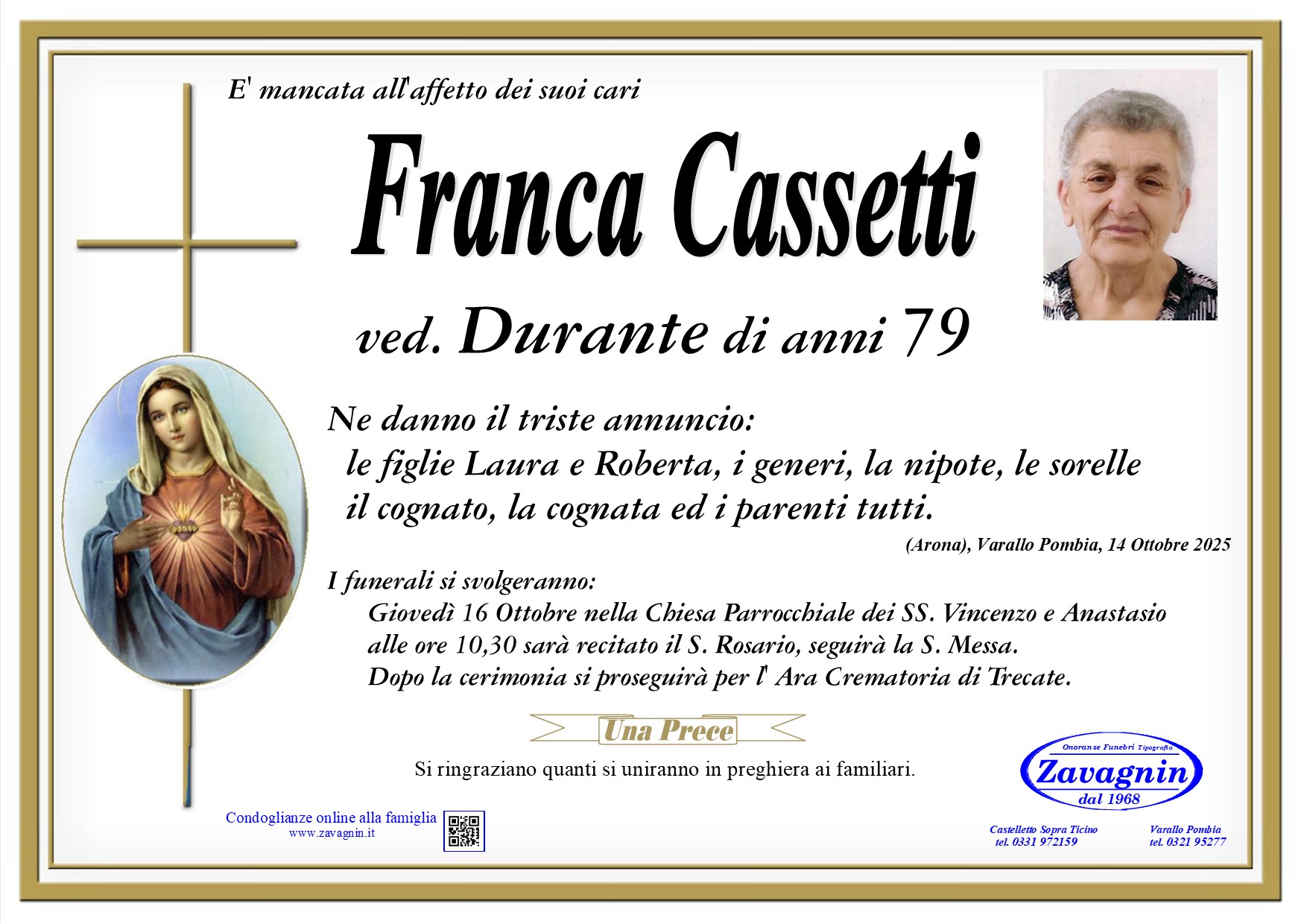 Home page \ I necrologi \ FRANCESCA AMABILE CASSETTI