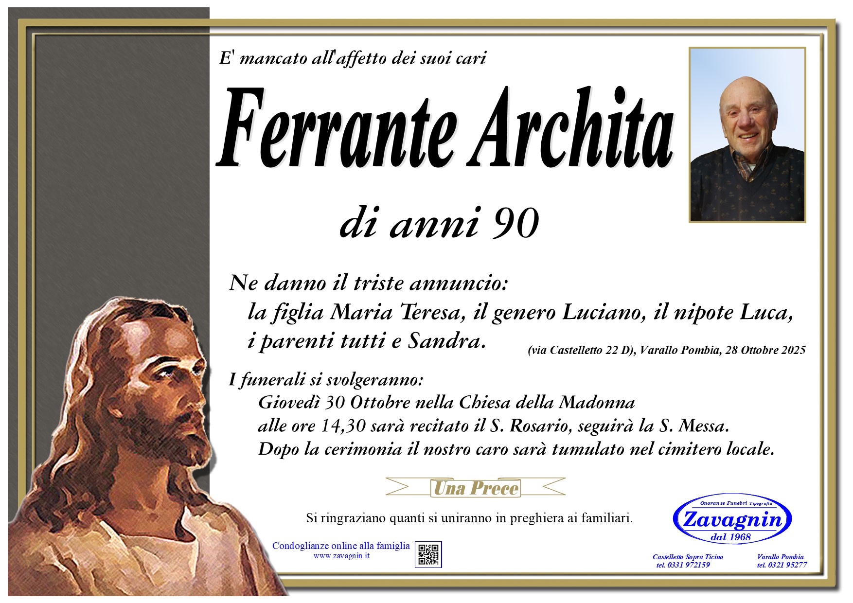 Home page \ I necrologi \ FERRANTE ARCHITA