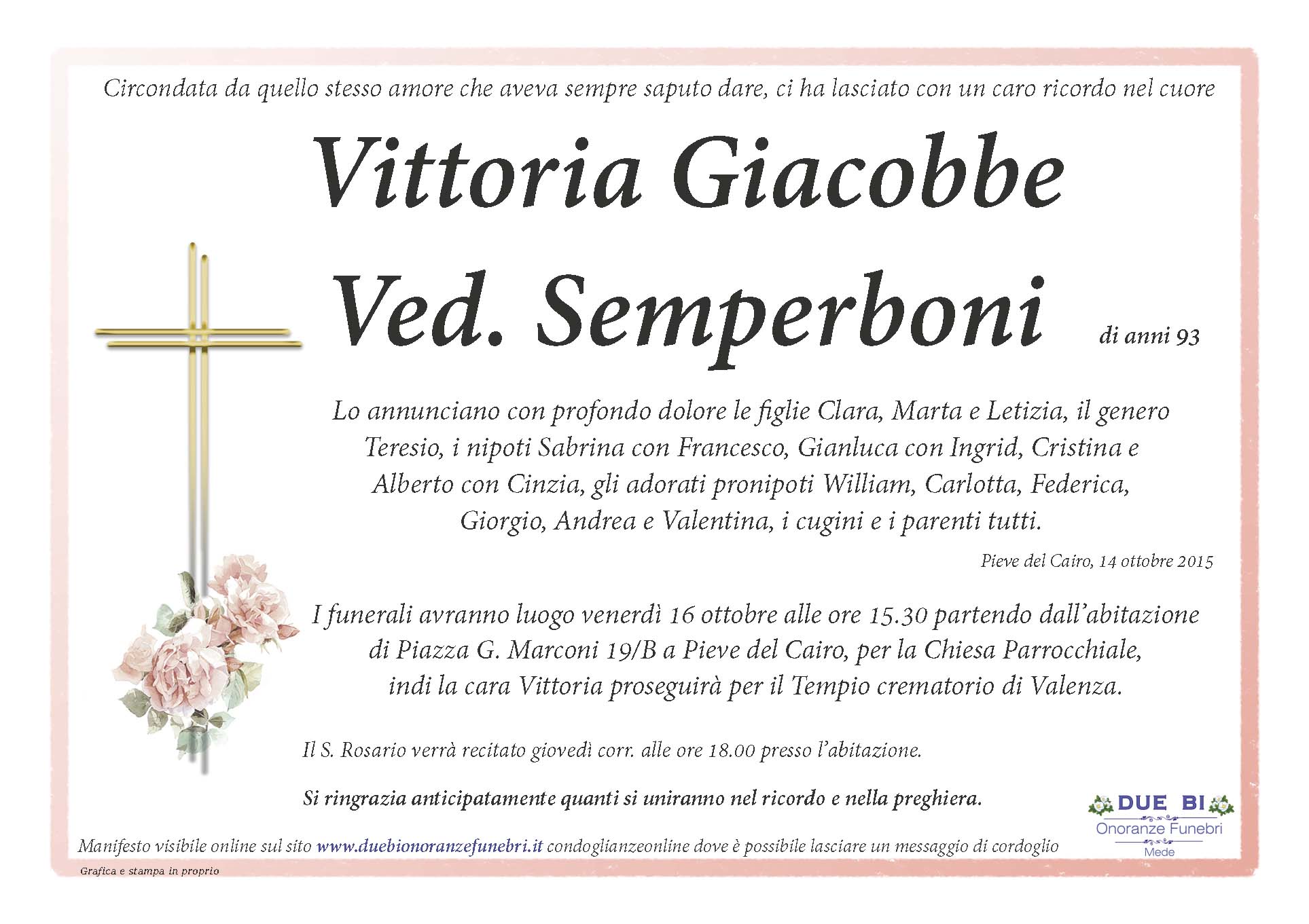 Home page \ I necrologi \ VITTORIA GIACOBBE