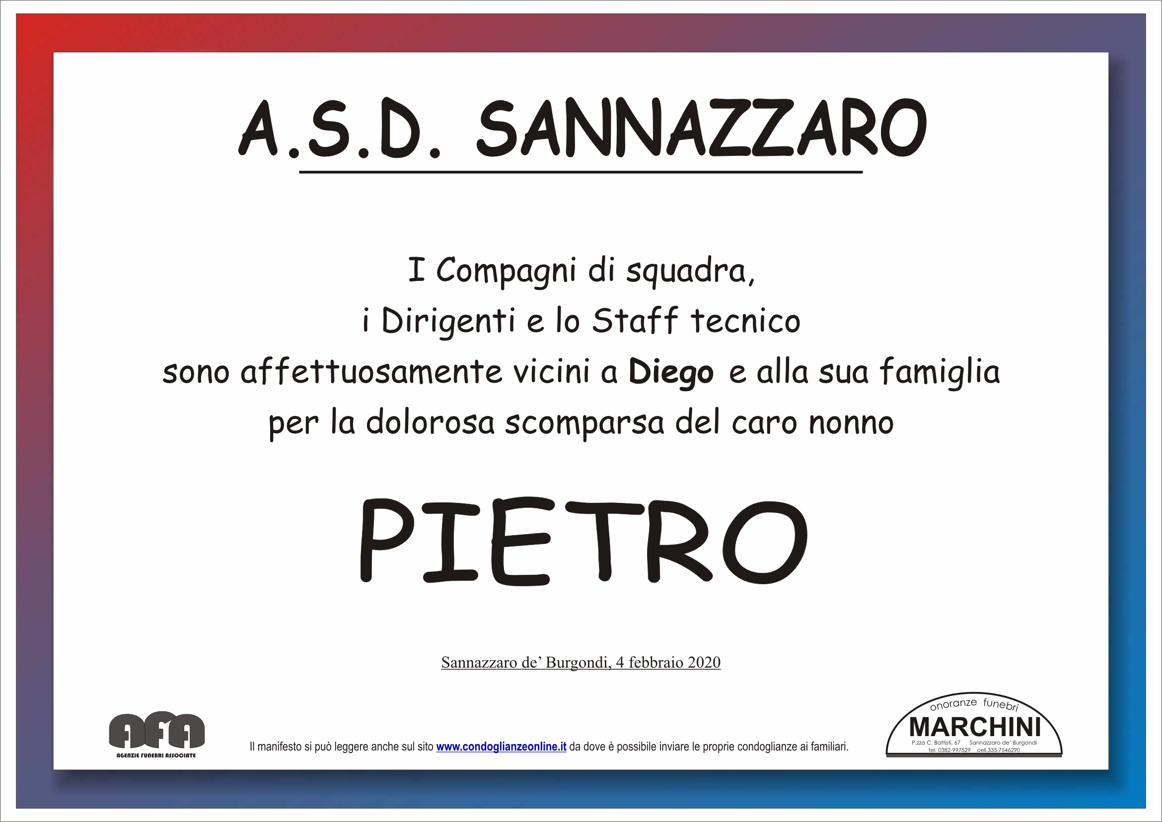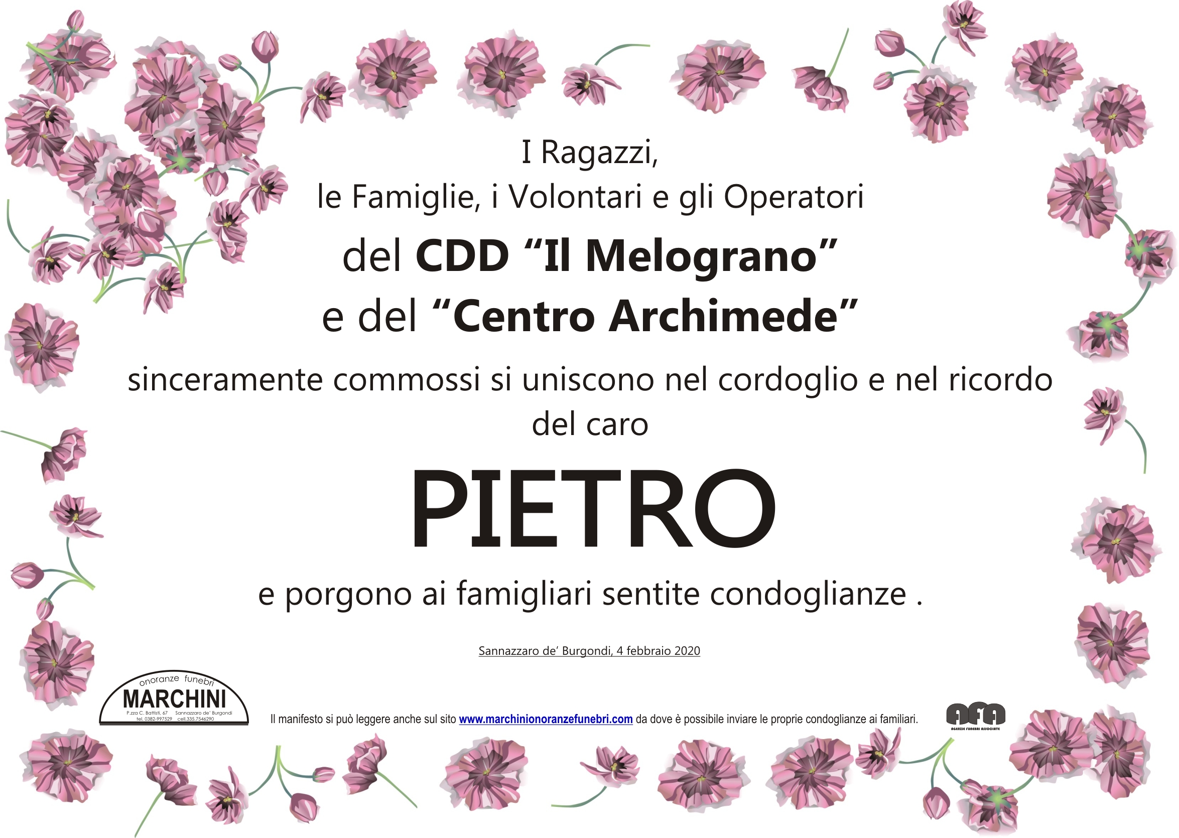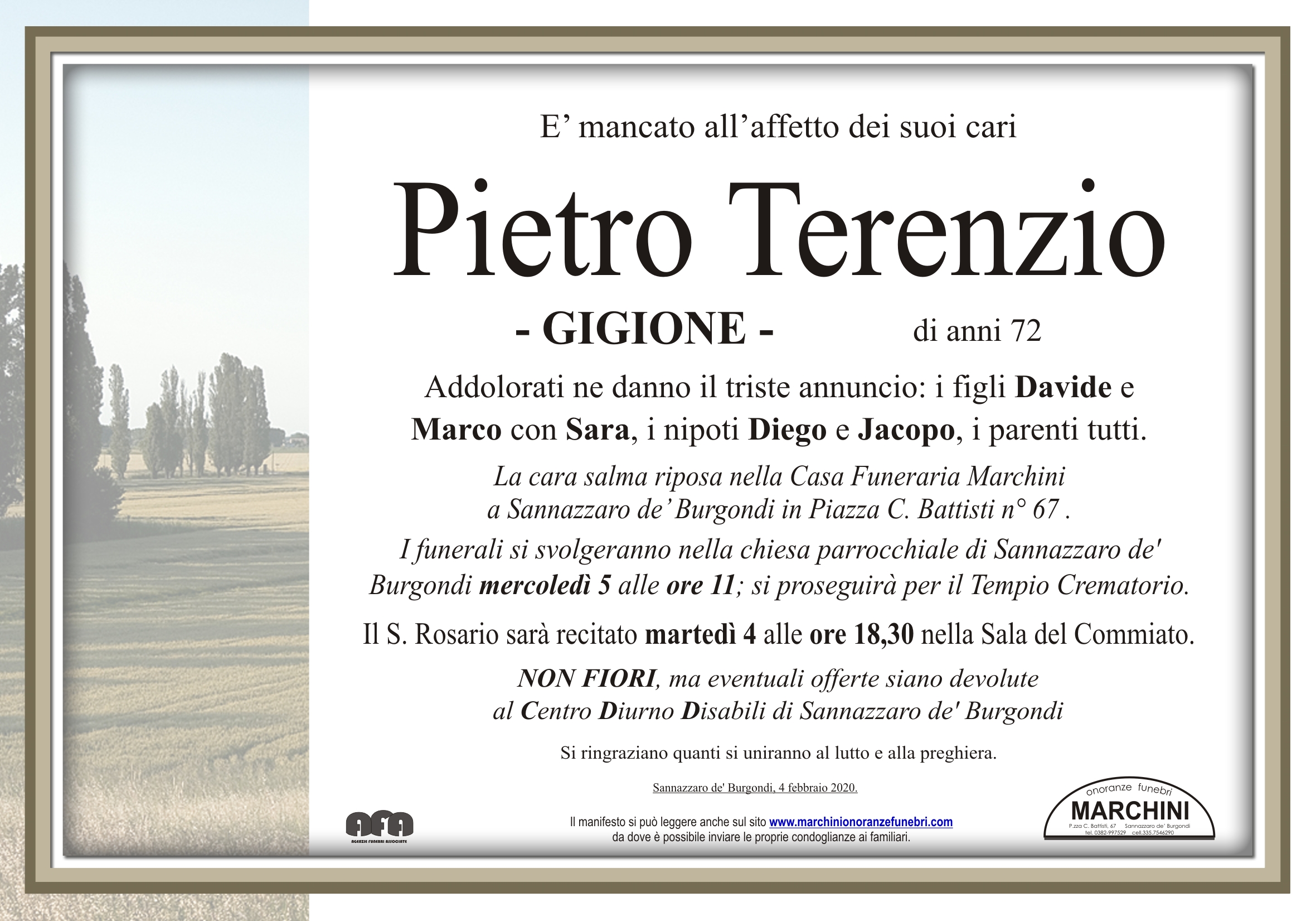 Home page \ I necrologi \ PIETRO TERENZIO