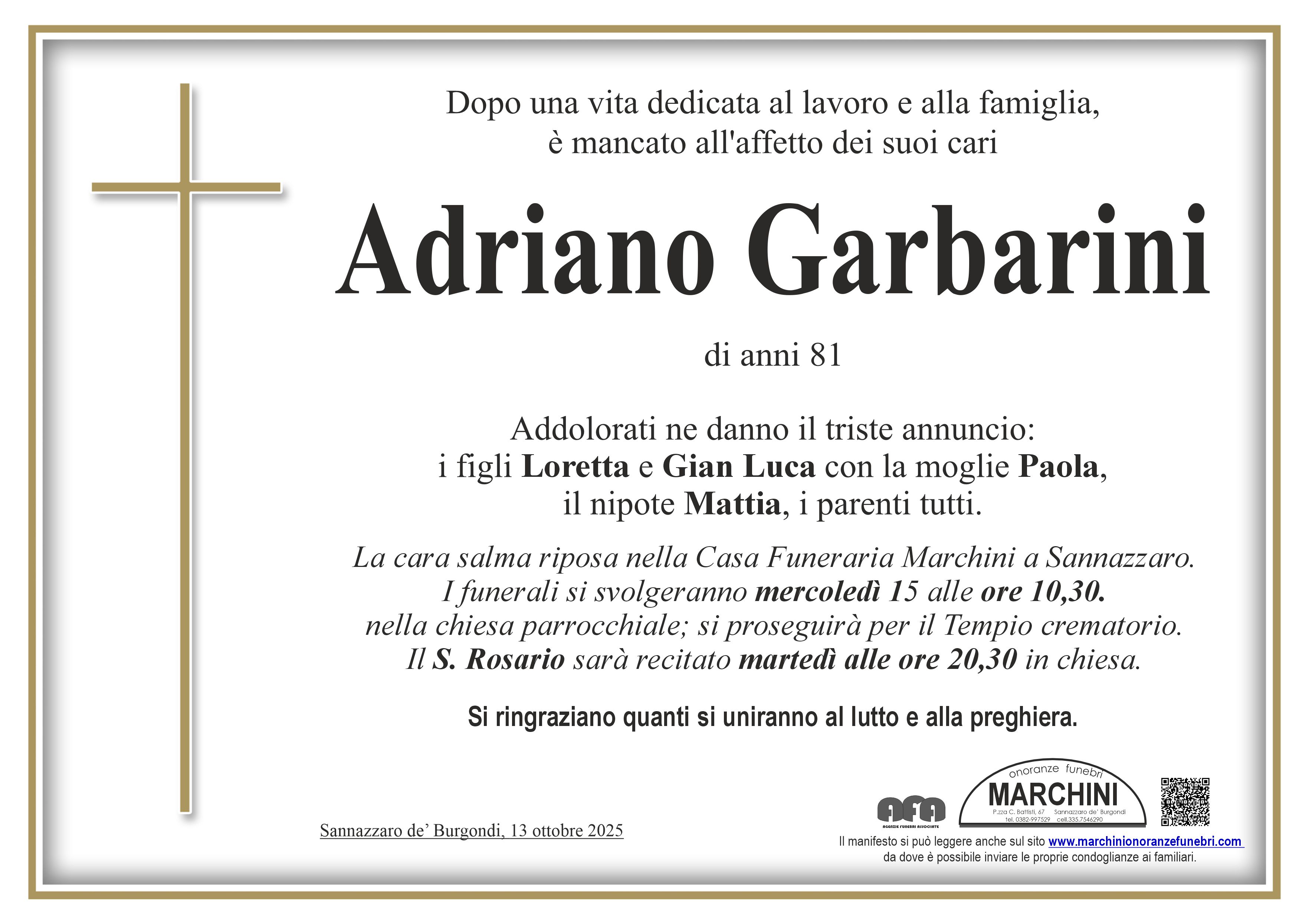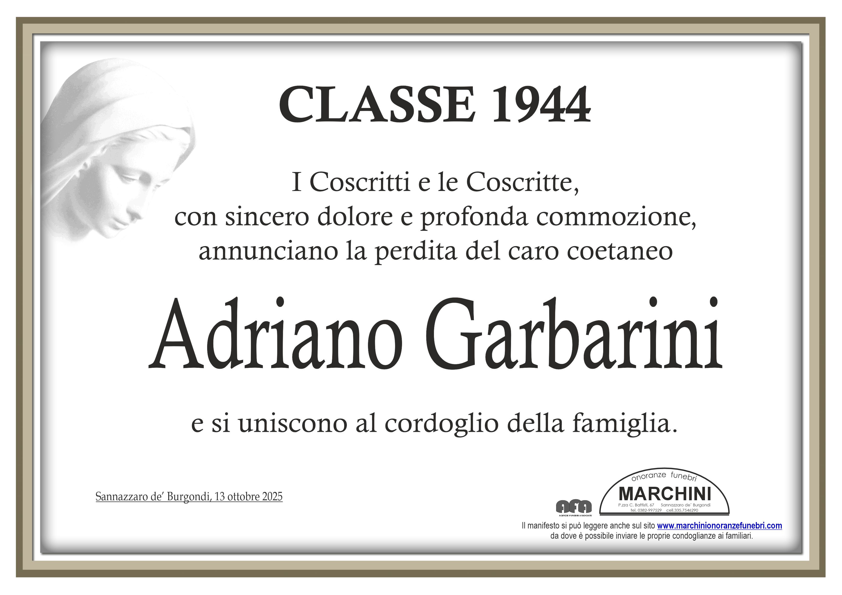 Home page \ I necrologi \ ADRIANO GARBARINI