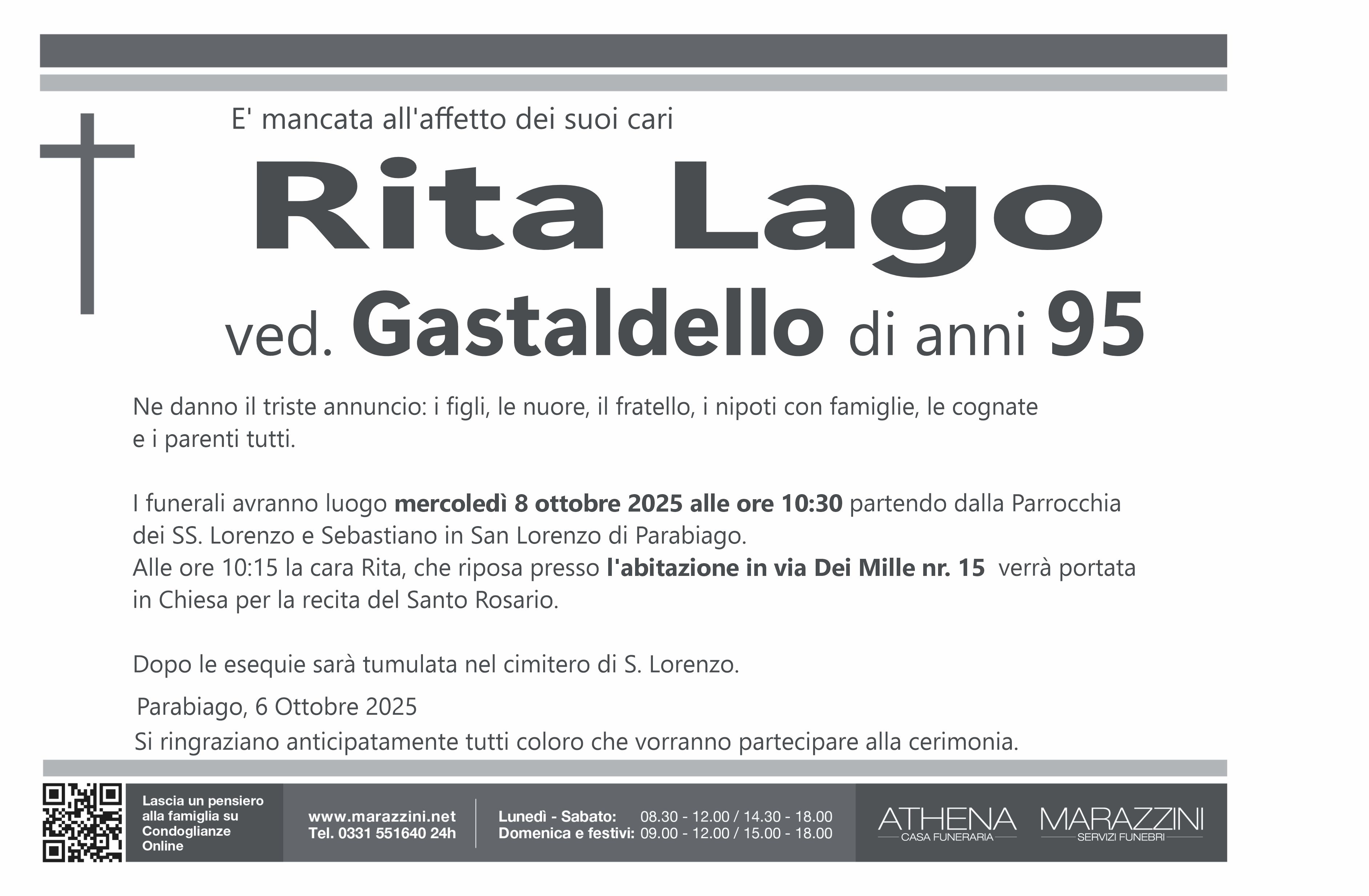 Home page \ I necrologi \ RITA LAGO