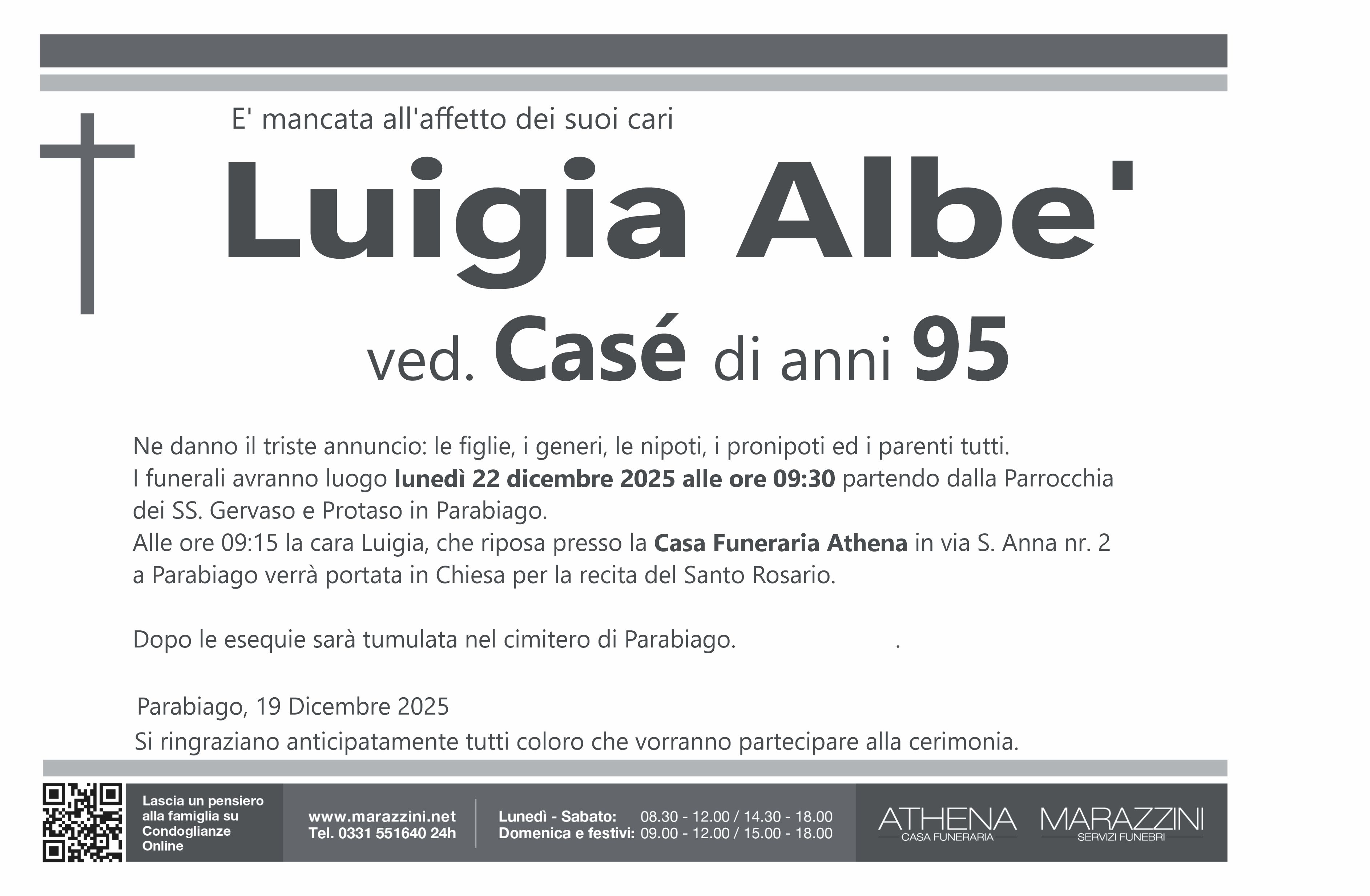 Home page \ I necrologi \ BENVENUTA ALBE'