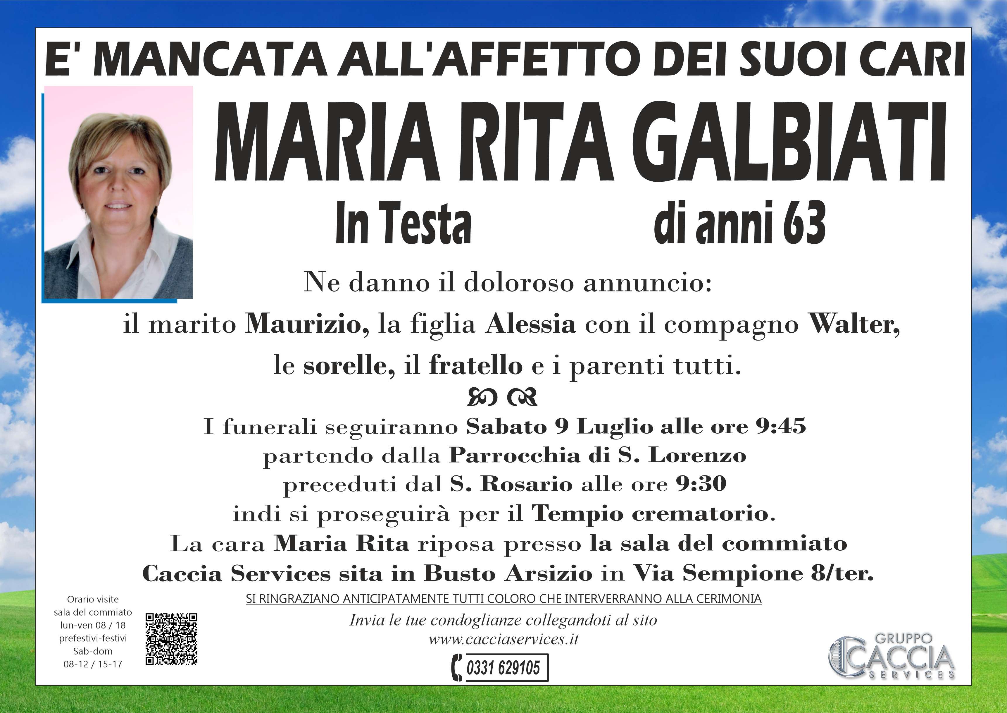 Home page \ I necrologi \ MARIA RITA GALBIATI