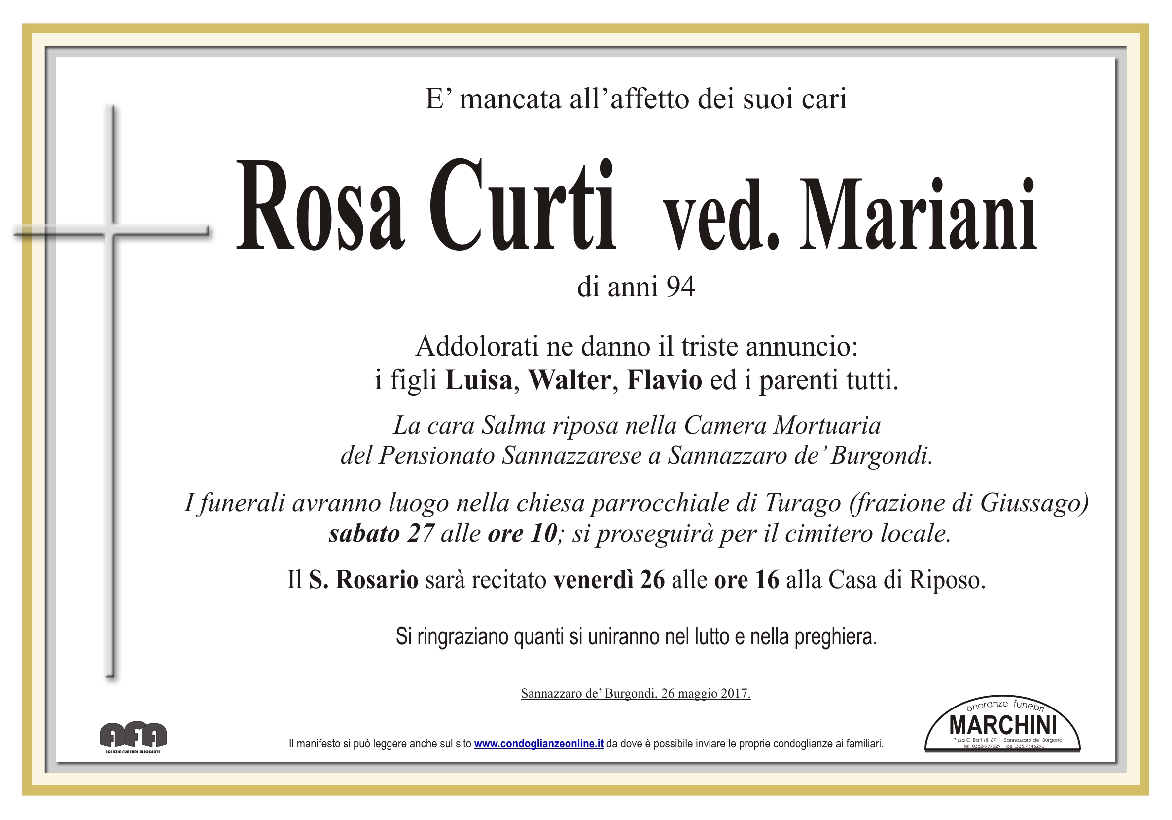 Home page \ I necrologi \ ROSA CURTI