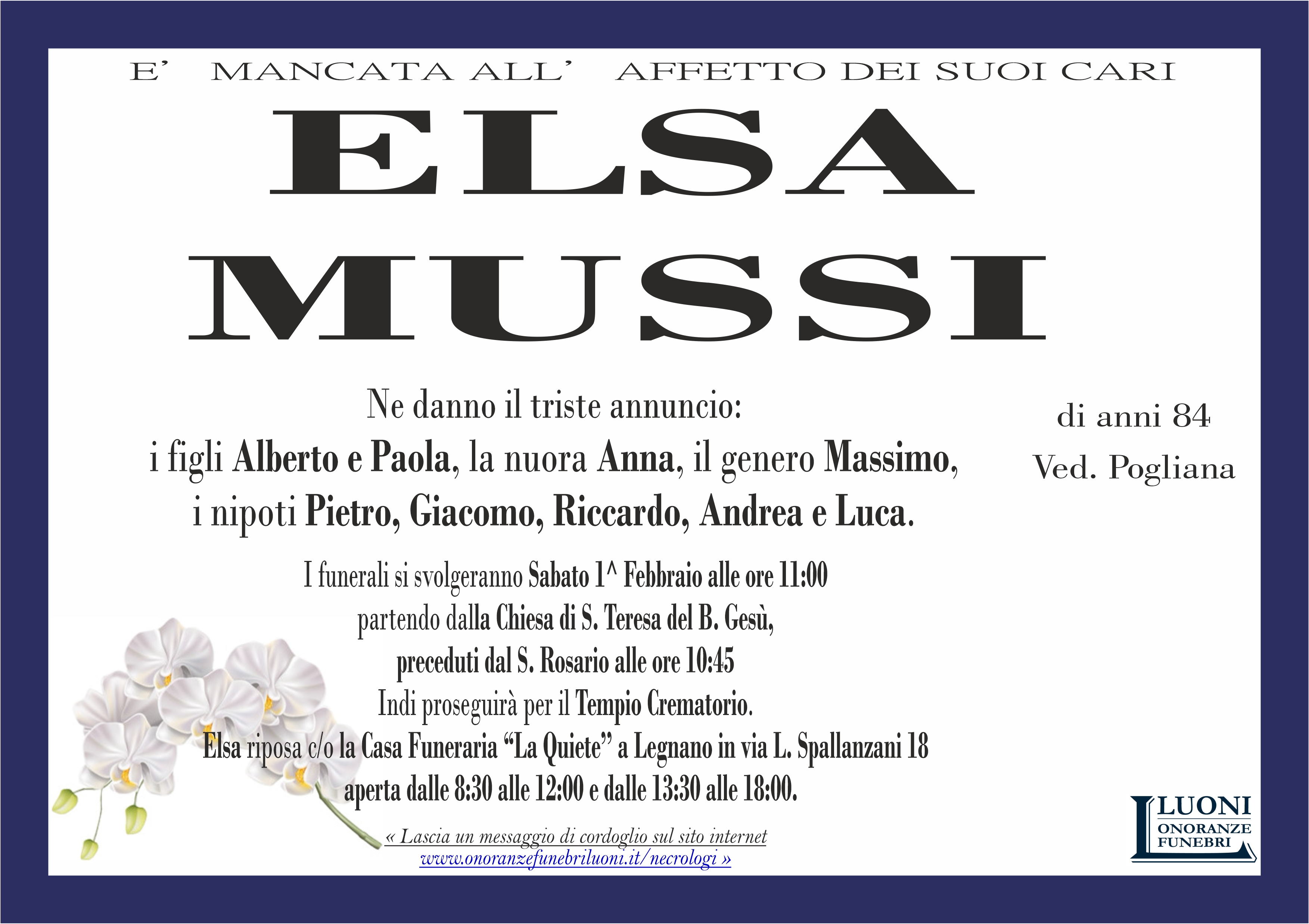 Home page \ I necrologi \ ELSA MUSSI