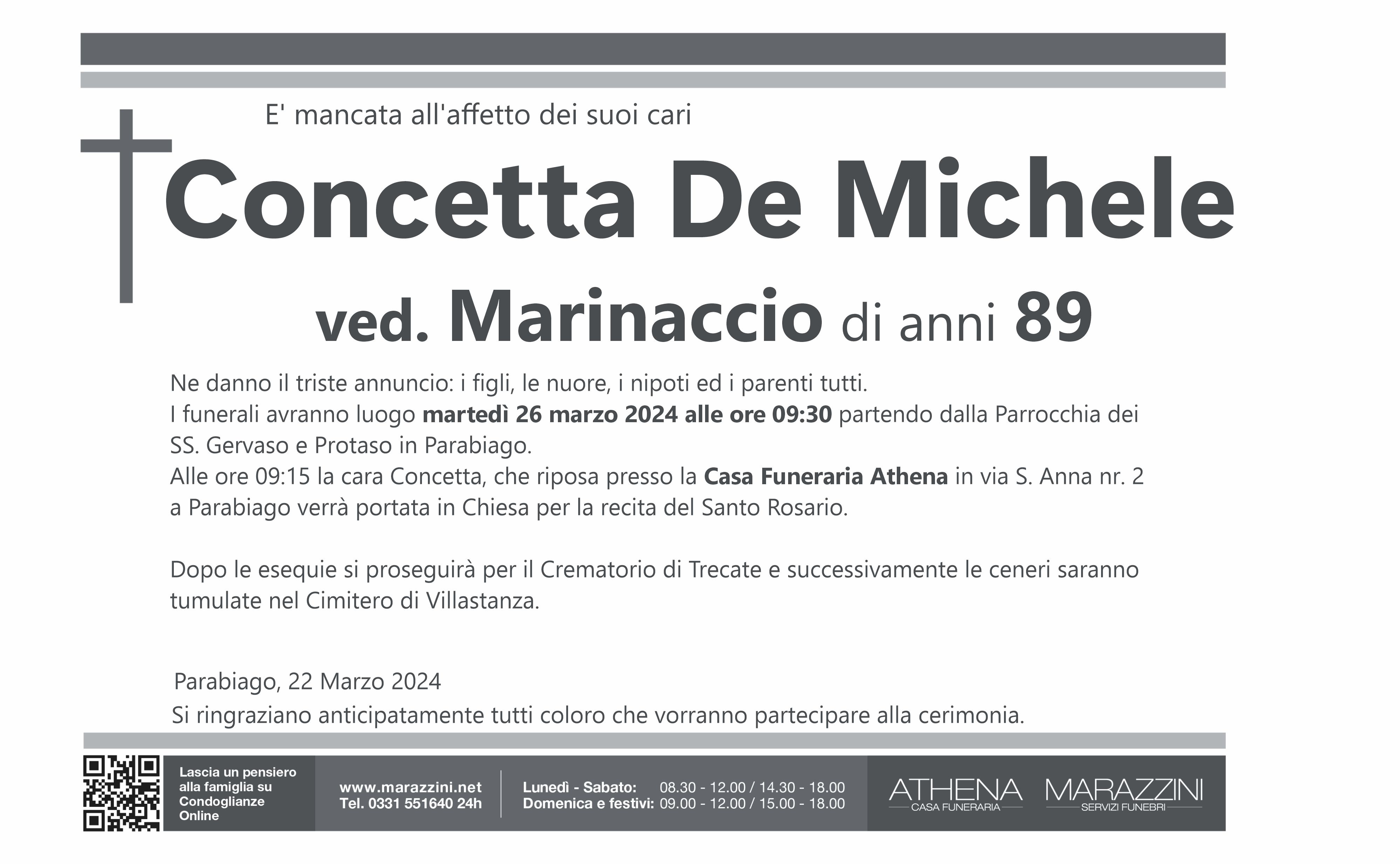 Home page \ I necrologi \ CONCETTA DE MICHELE