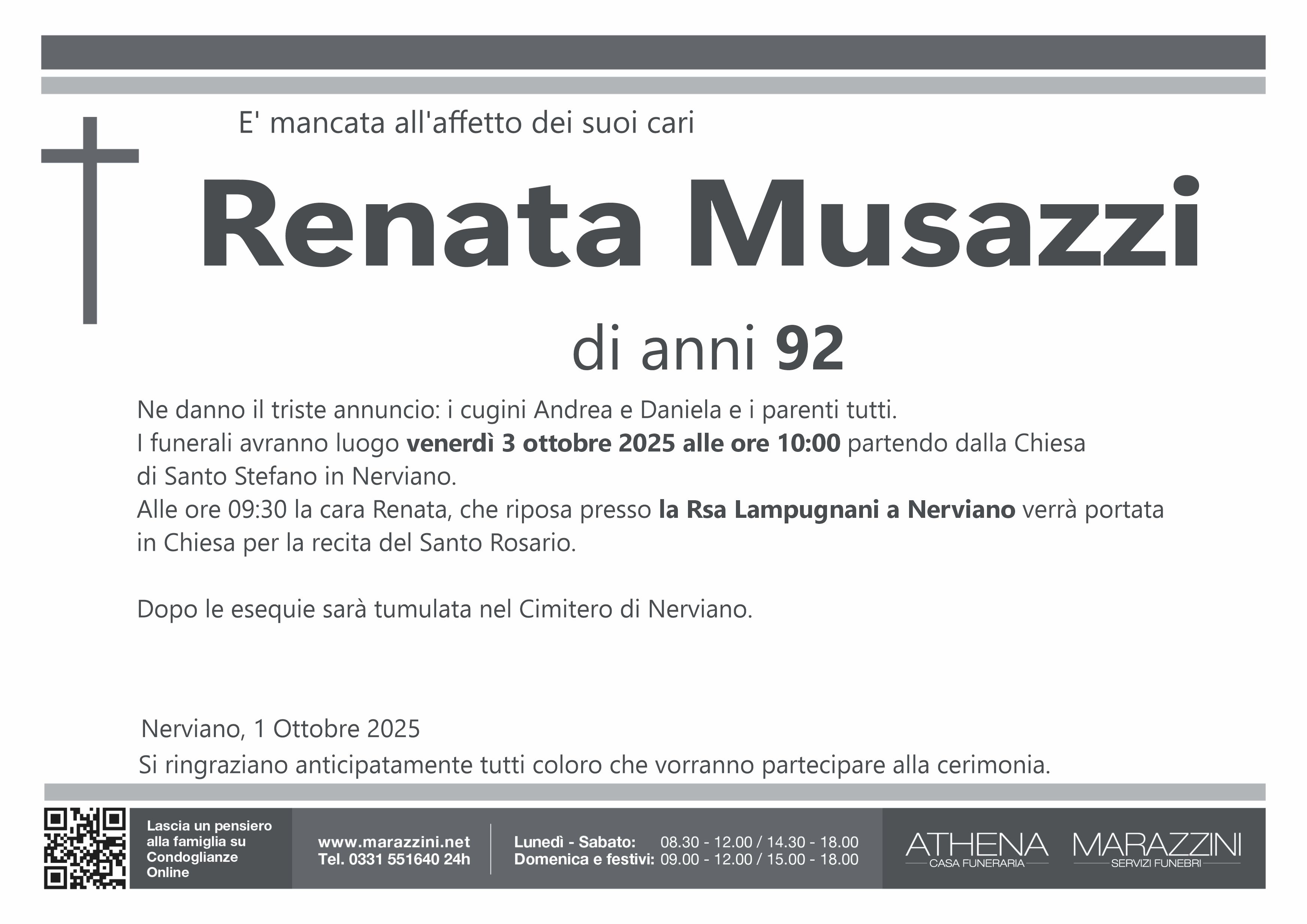 Home page \ I necrologi \ RENATA MUSAZZI