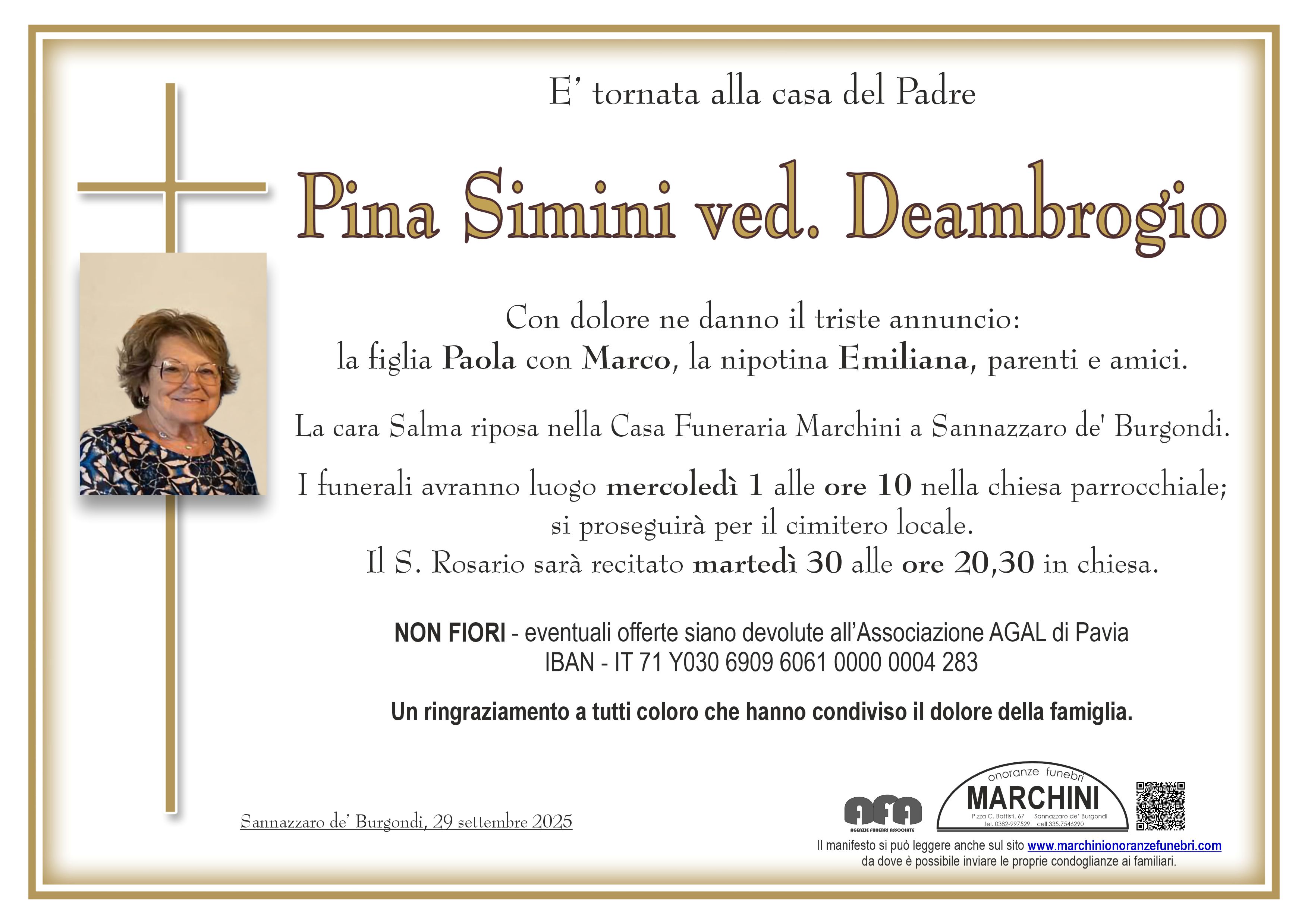 Home page \ I necrologi \ GIUSEPPINA SIMINI