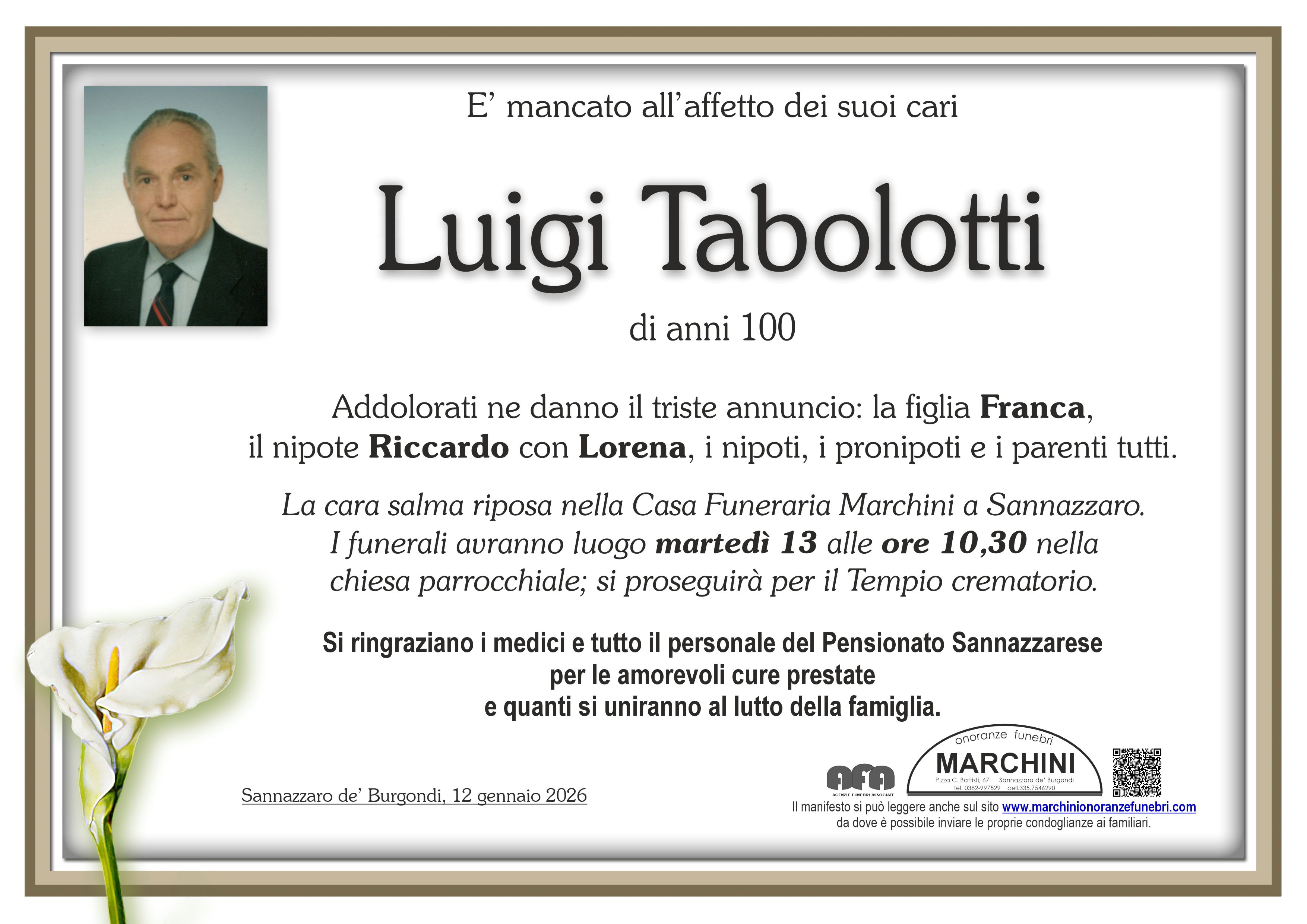 Home page \ I necrologi \ LUIGI TABOLOTTI