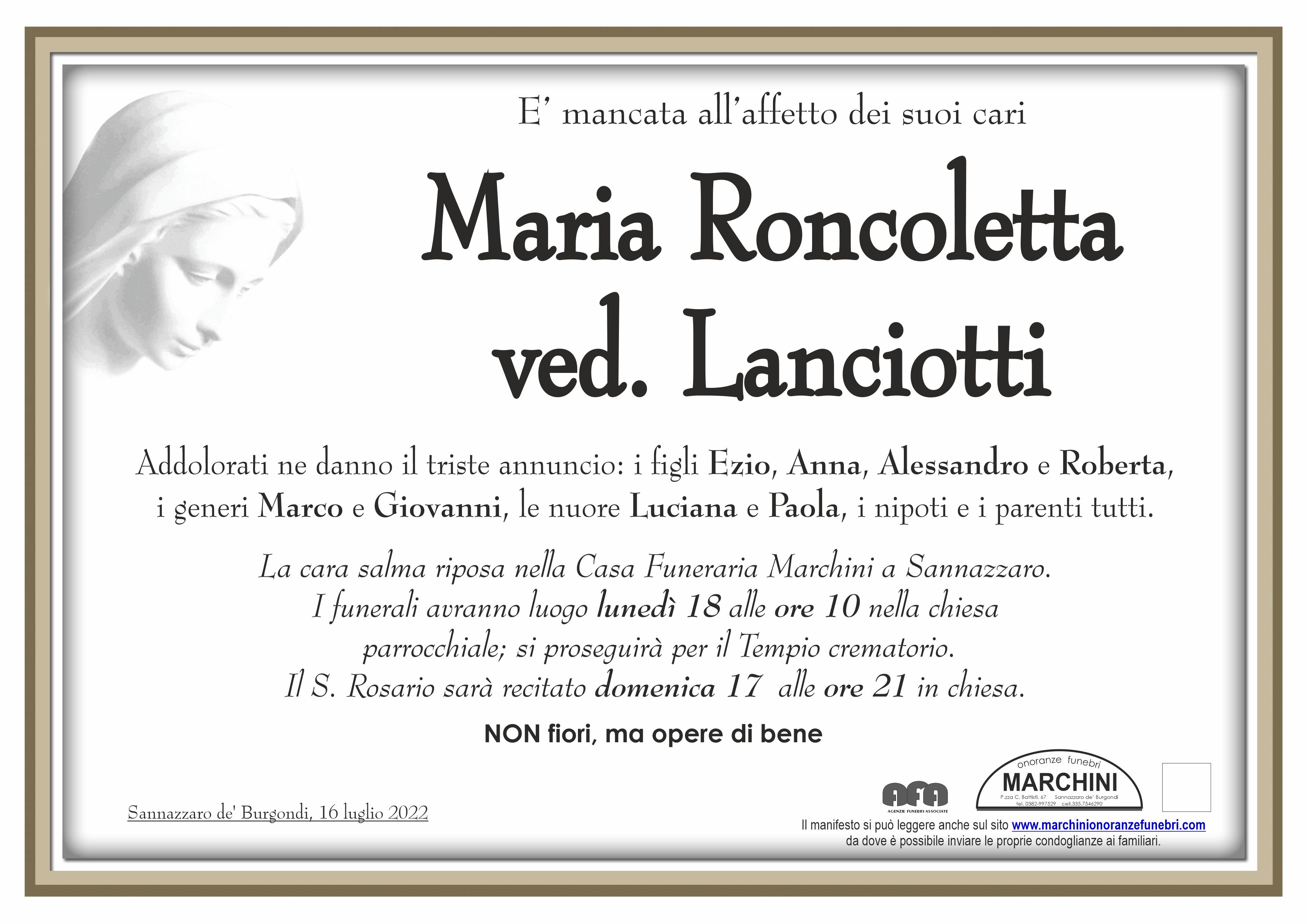 Home page \ I necrologi \ MARIA RONCOLETTA