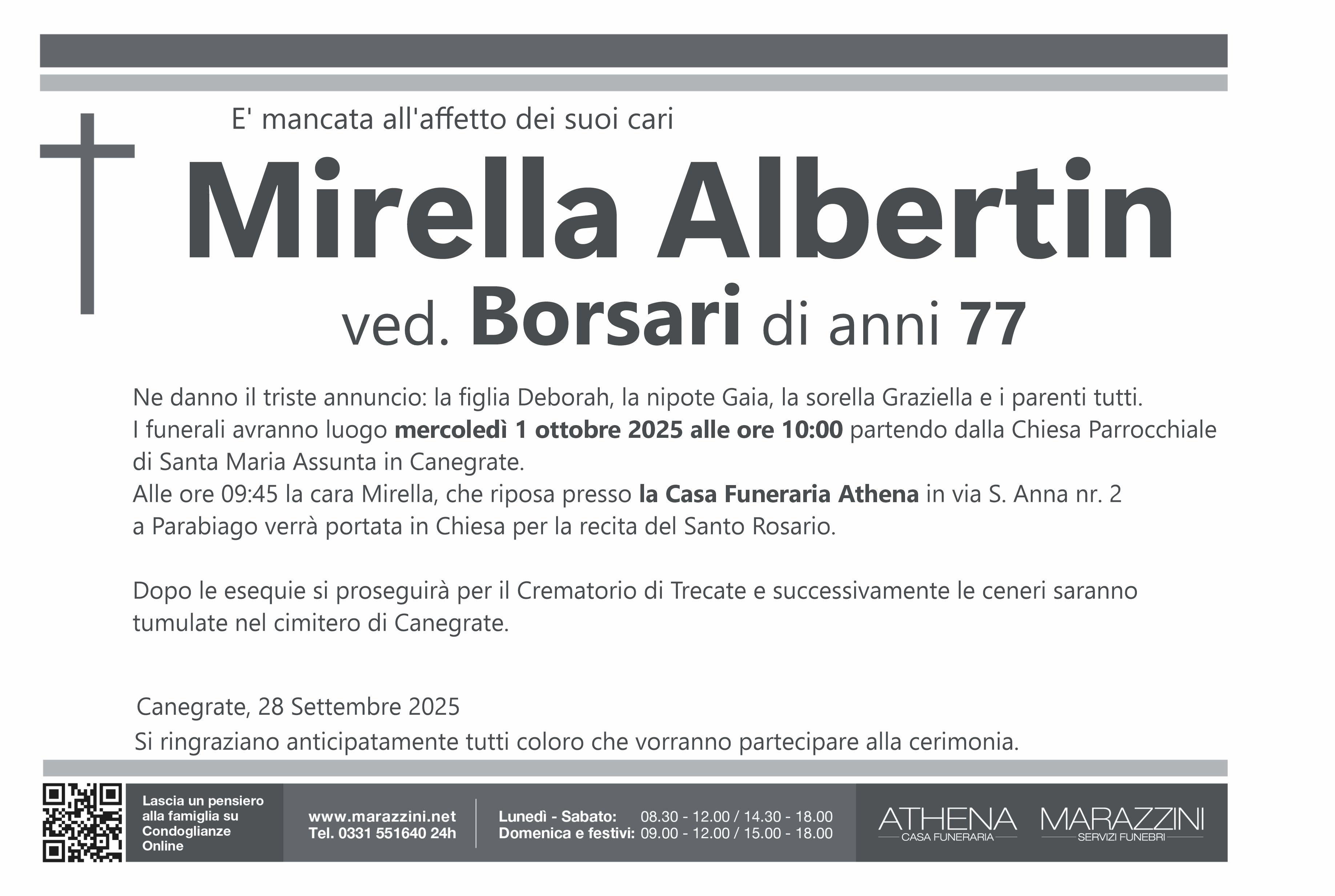 Home page \ I necrologi \ MIRELLA ALBERTIN