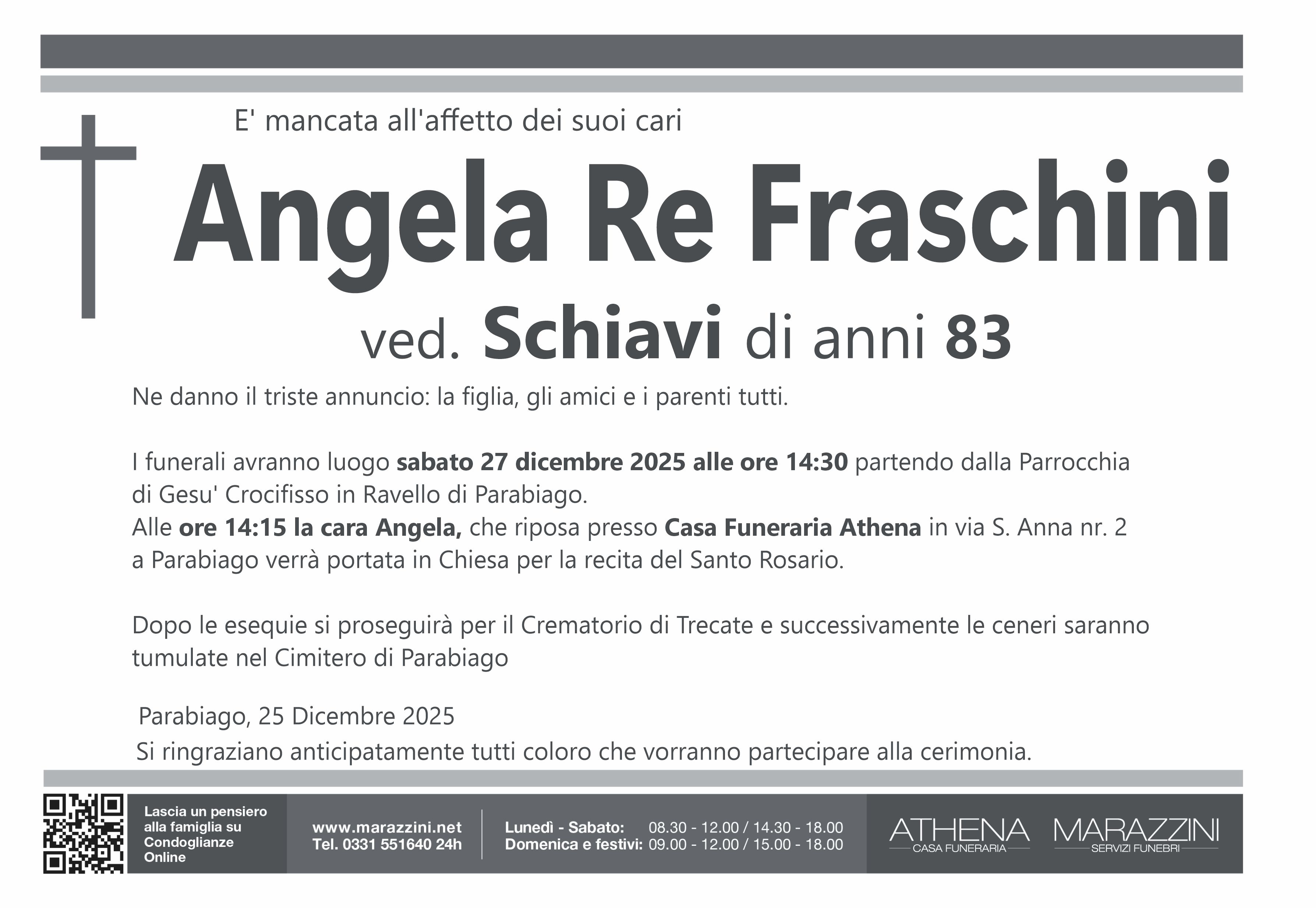 Home page \ I necrologi \ ANGELA RE FRASCHINI