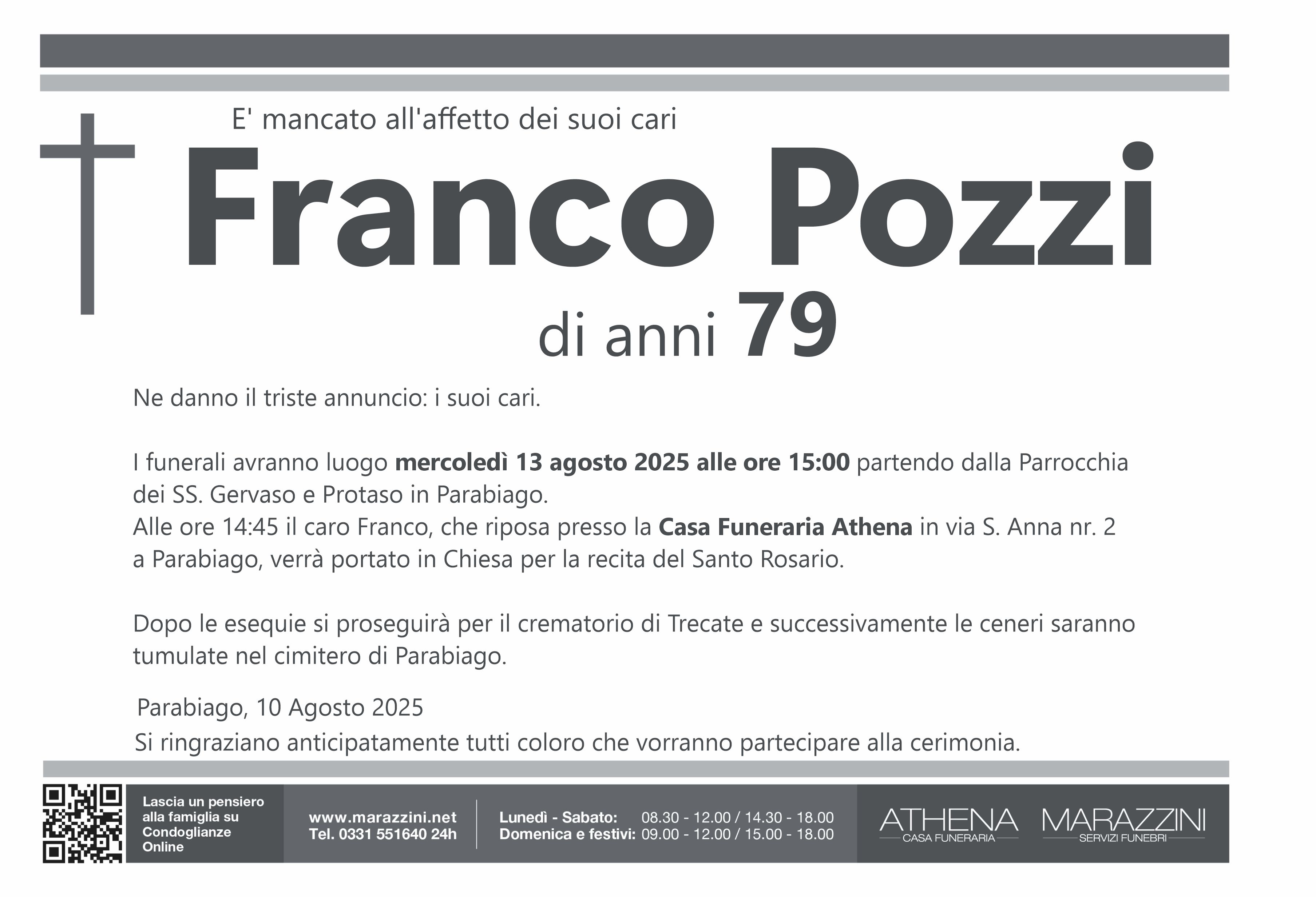Home page \ I necrologi \ FRANCO POZZI