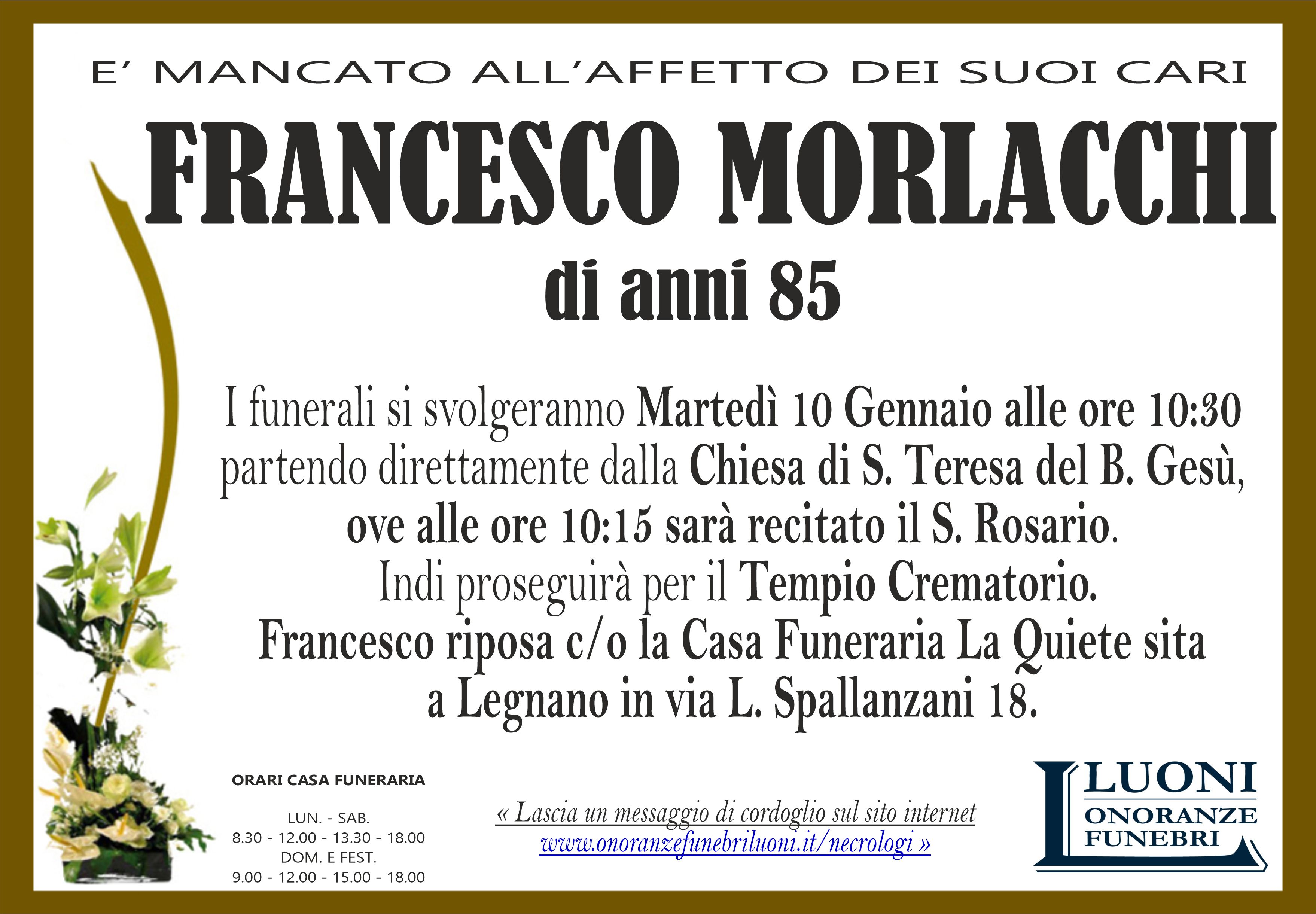 Home page \ I necrologi \ FRANCESCO MORLACCHI