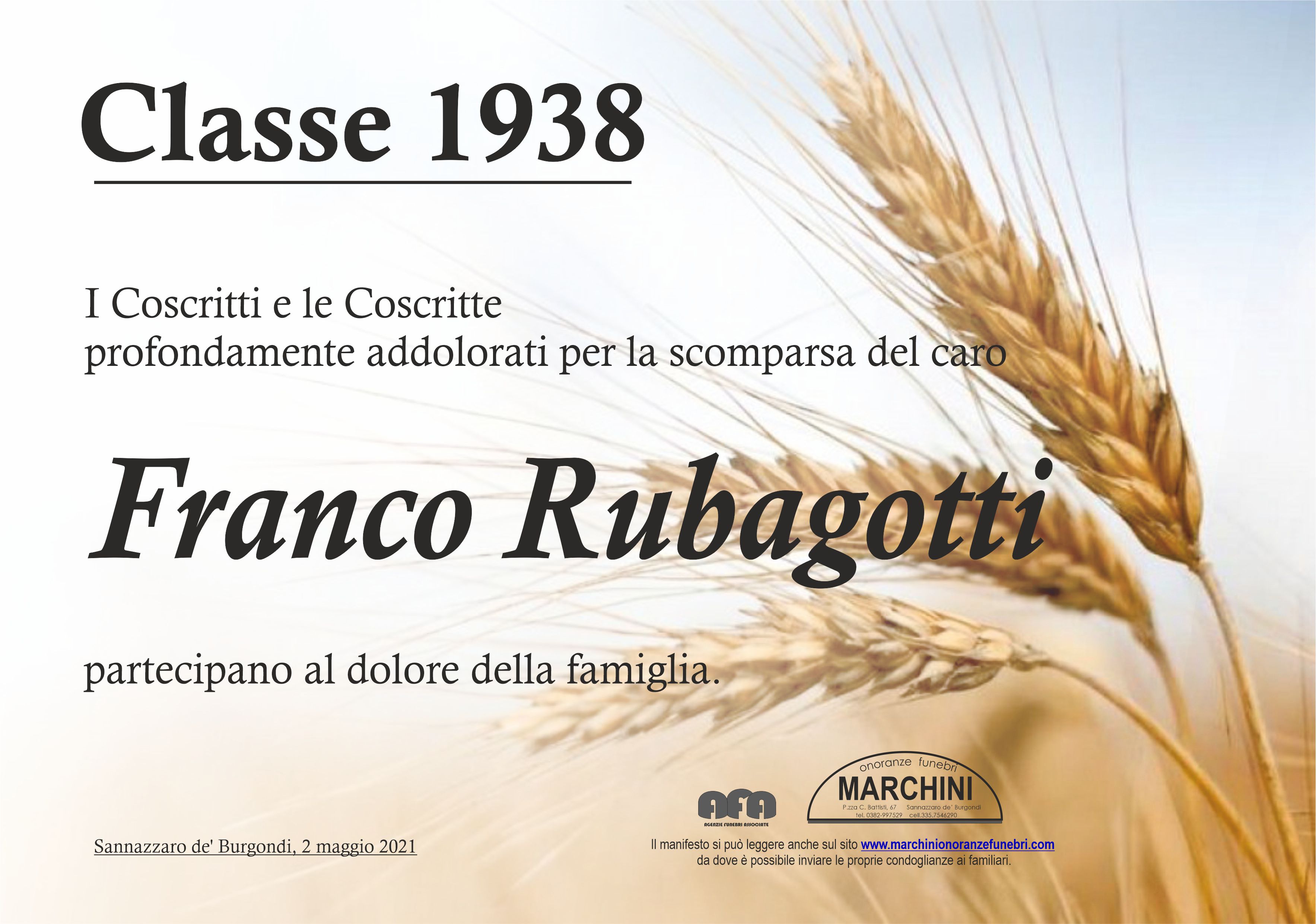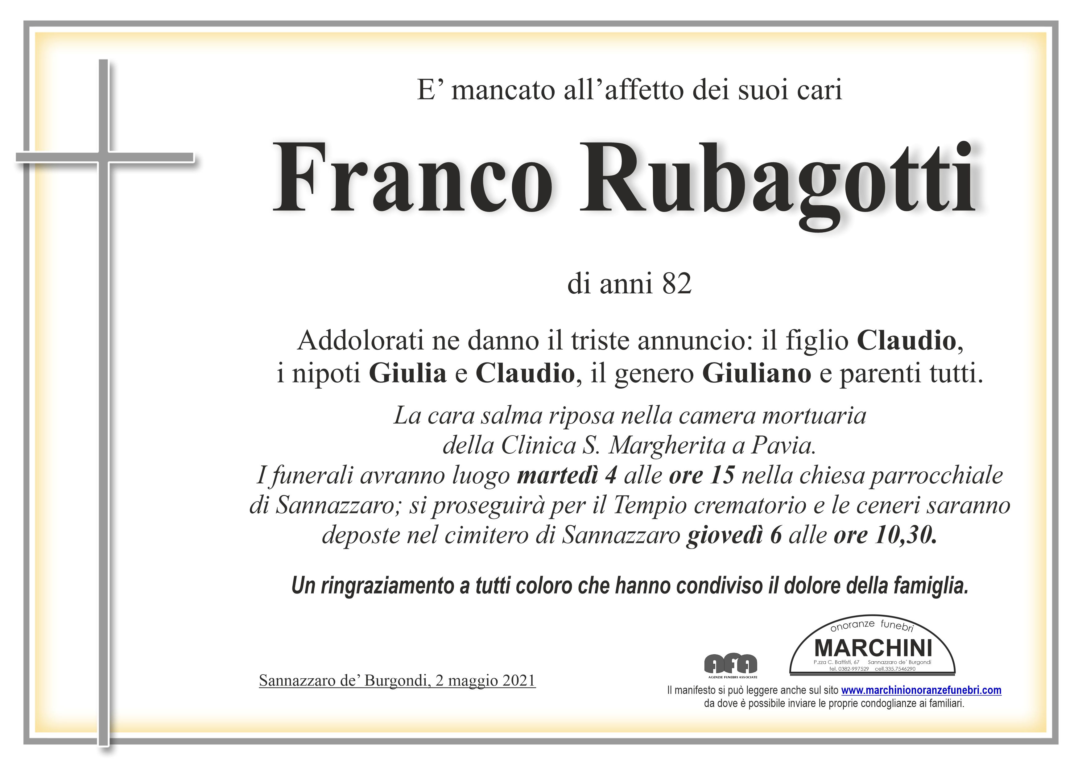 Home page \ I necrologi \ LUCIANO GIANFRANCO RUBAGOTTI
