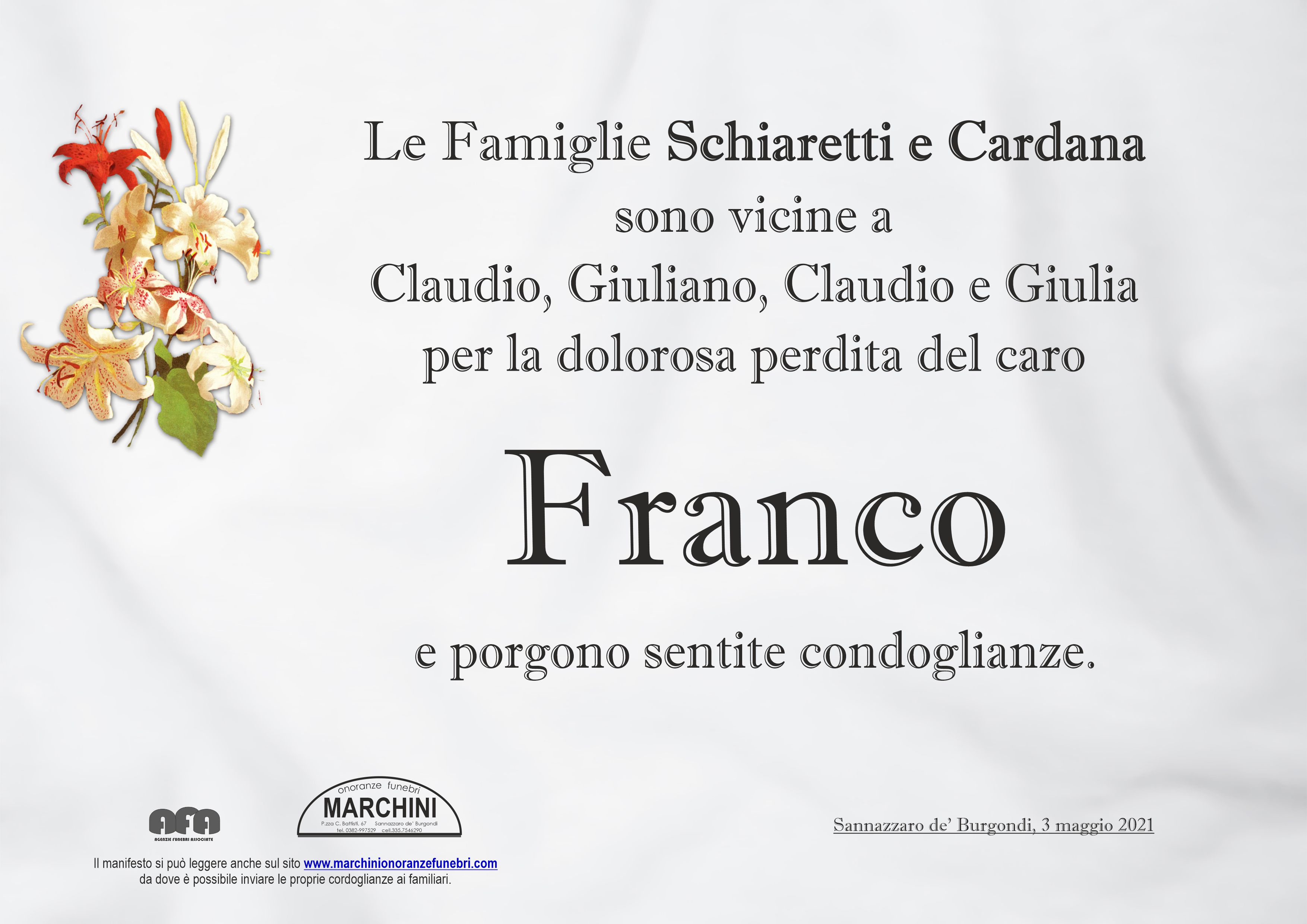 A neanche due mesi dalla scomparsa della cara Mariuccia, un altro grave lutto vi ha colpiti. Vi sono vicina in questo triste momento è porgo le mie condoglianze.