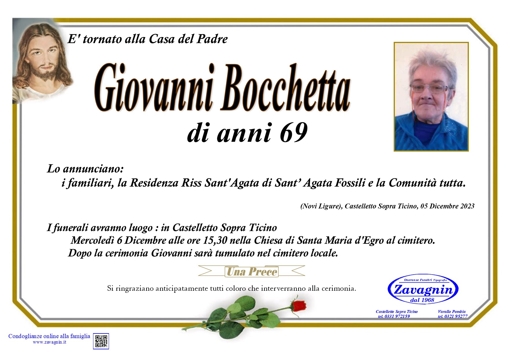 Home page \ I necrologi \ GIOVANNI BOCCHETTA