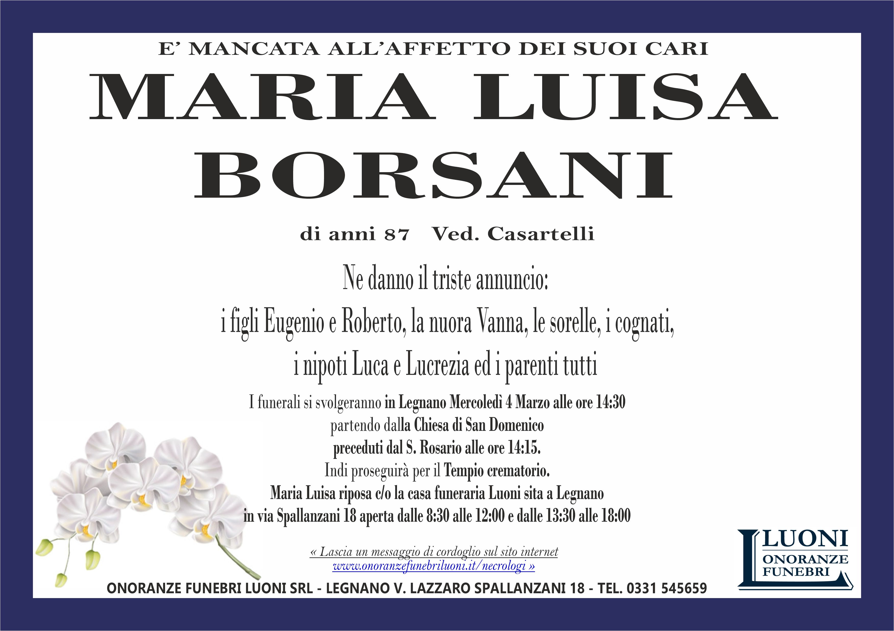 Home page \ I necrologi \ MARIA LUISA BORSANI