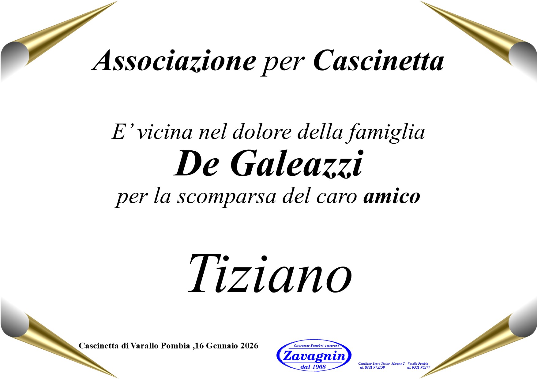 Home page \ I necrologi \ TIZIANO DE GALEAZZI