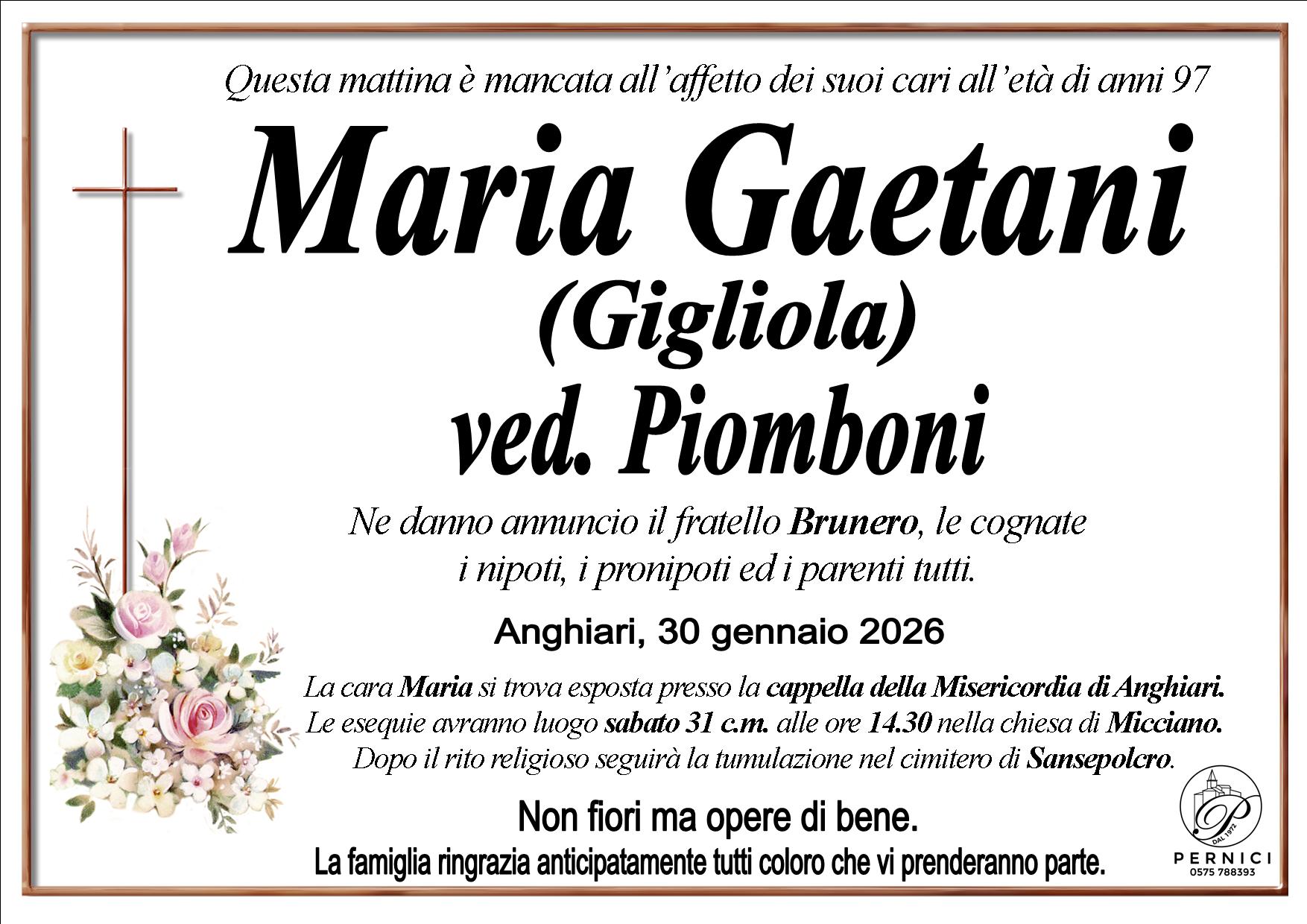 Home page \ I necrologi \ MARIA GAETANI 'Gigliola'