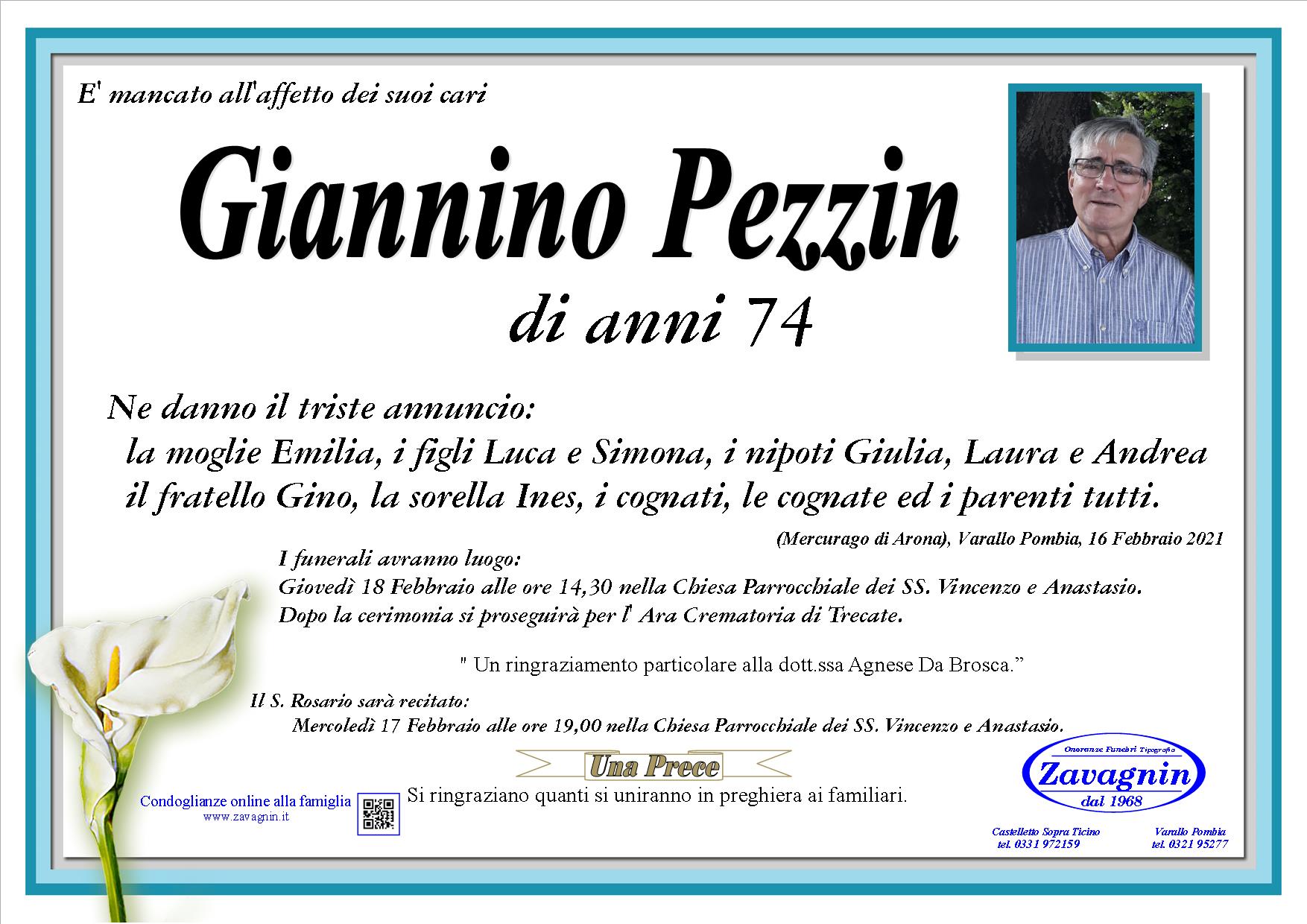 Home page \ I necrologi \ GIANNINO PEZZIN