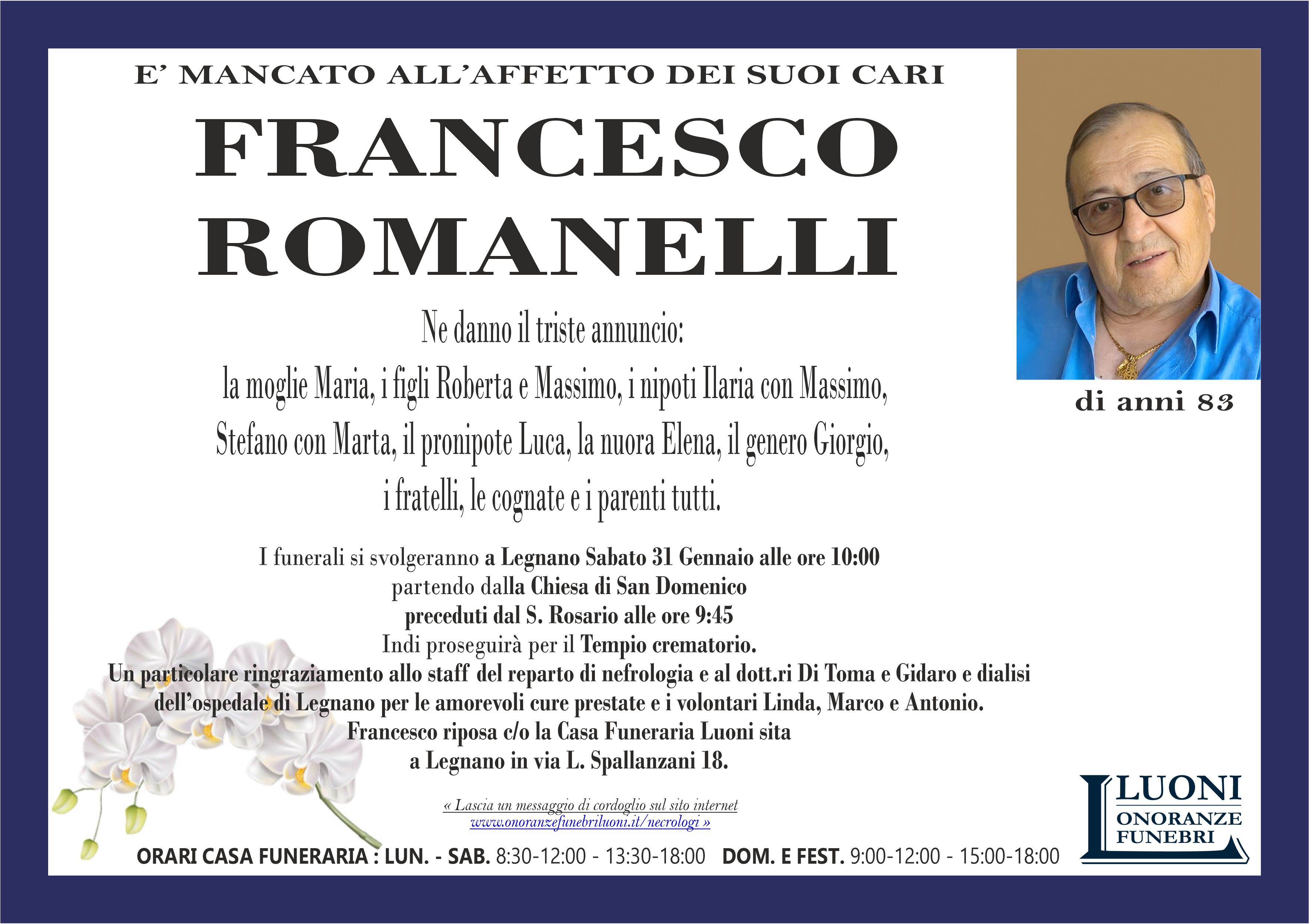 Home page \ I necrologi \ FRANCESCO ROMANELLI