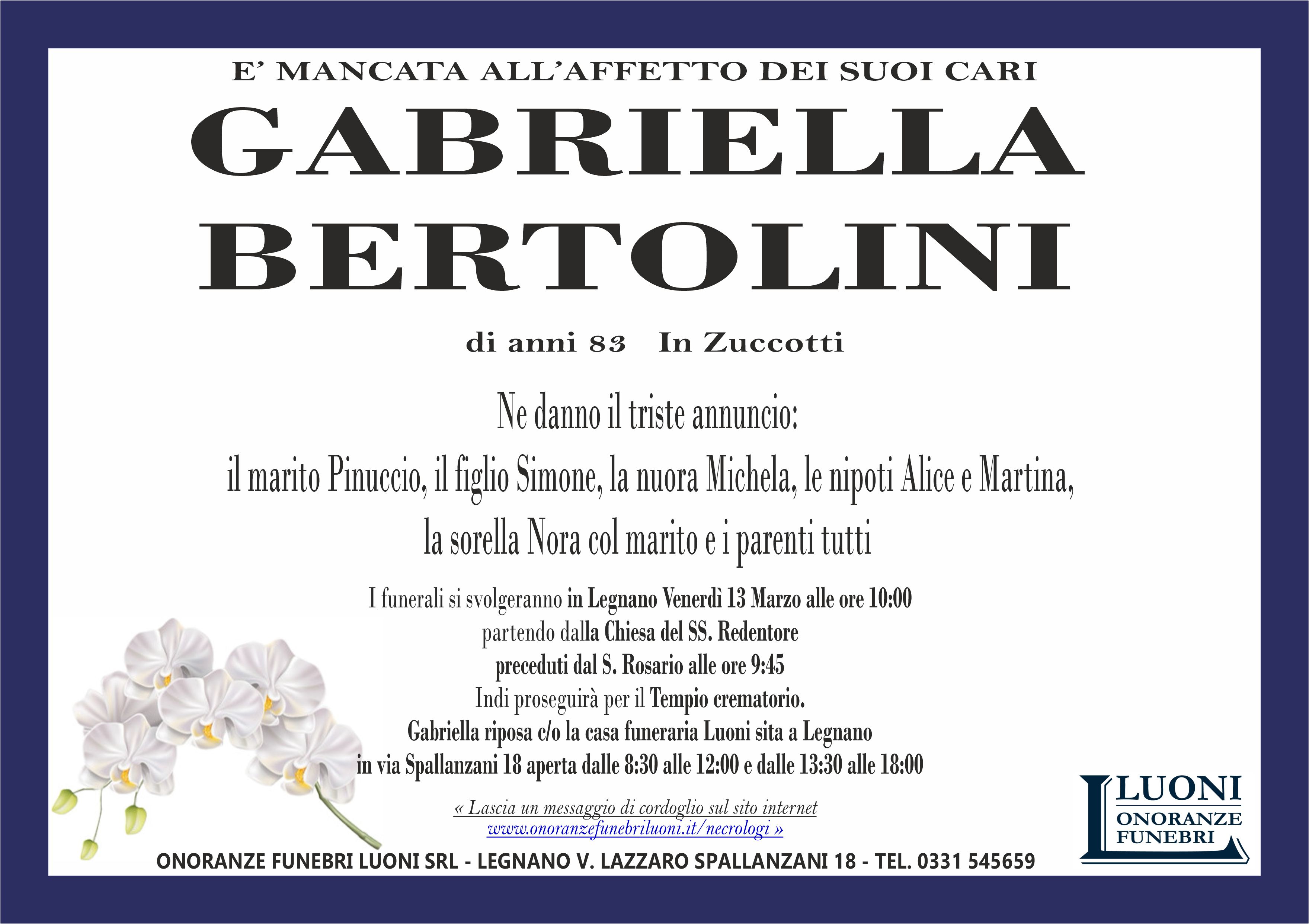 Home page \ I necrologi \ ANTONIA BERTOLINI 'GABRIELLA'