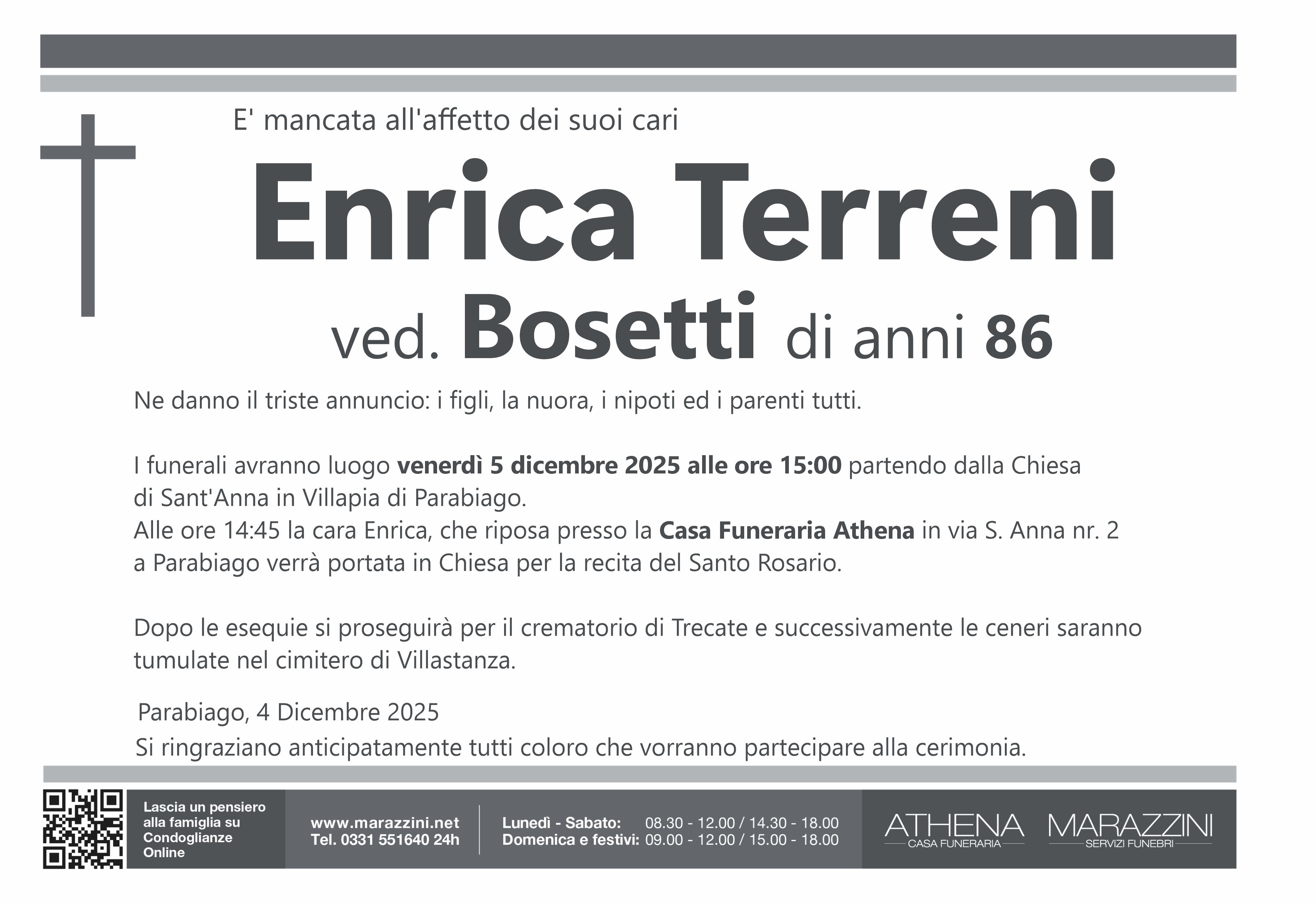 Home page \ I necrologi \ ENRICA TERRENI