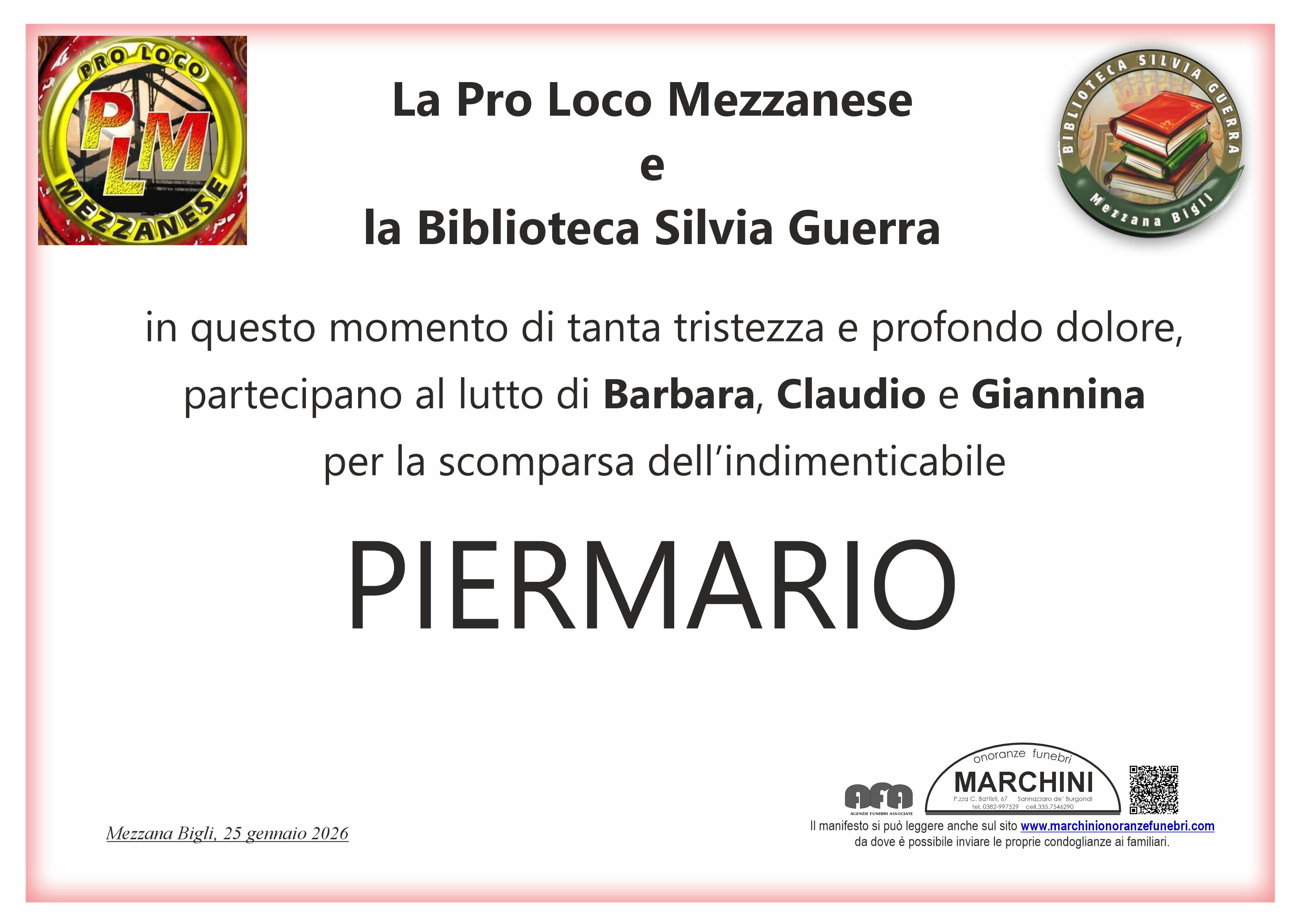 Le più sentite condoglianze Mauro Elena Fausta Secondi