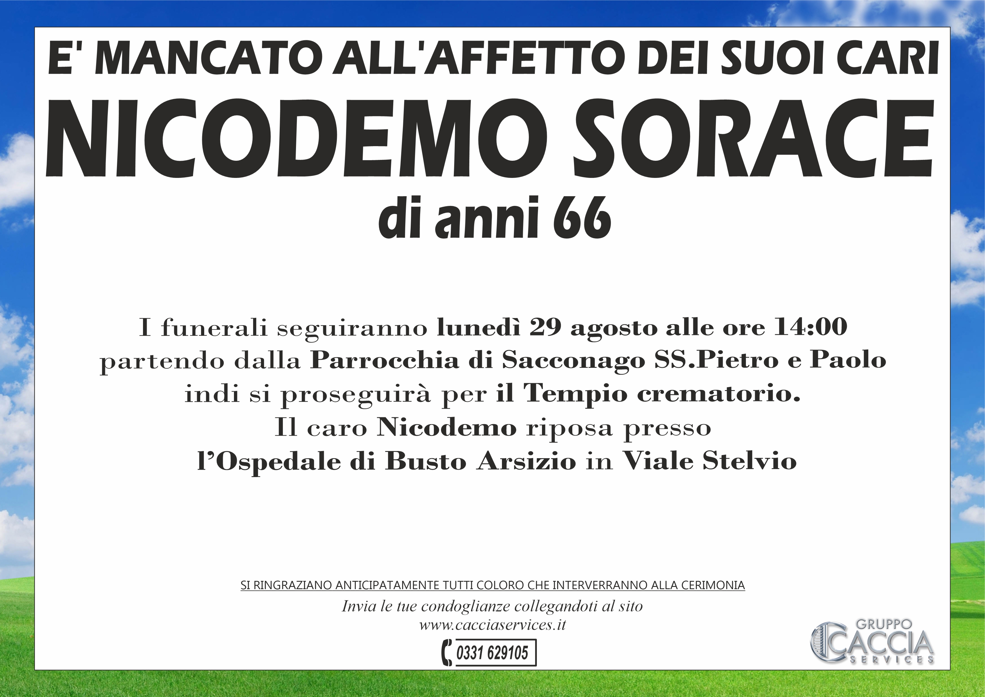Home page \ I necrologi \ NICODEMO SORACE