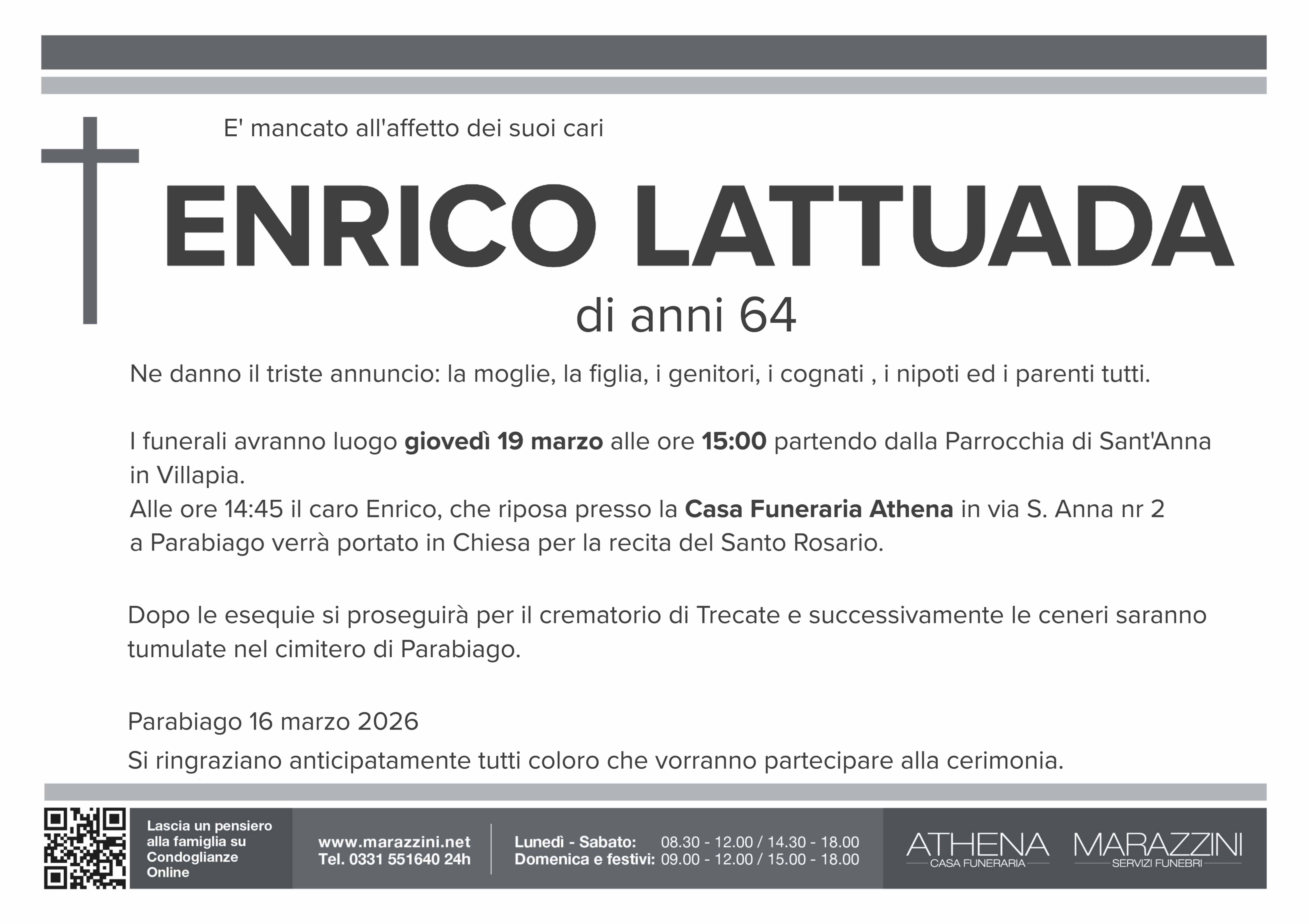 Home page \ I necrologi \ ENRICO LATTUADA