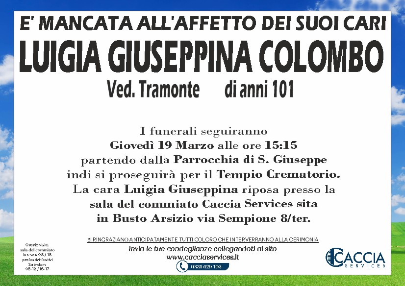 Home page \ I necrologi \ LUIGIA GIUSEPPINA COLOMBO