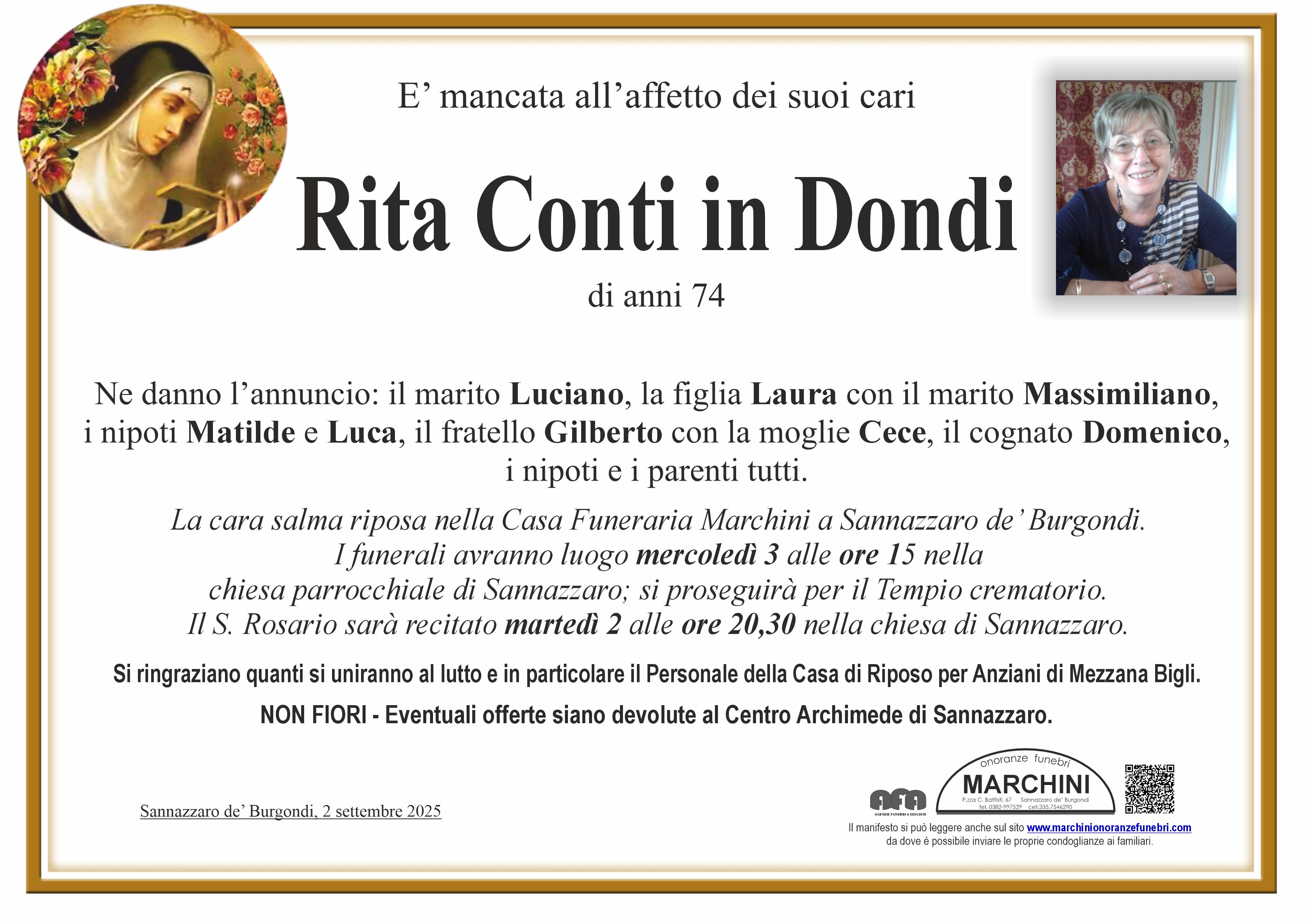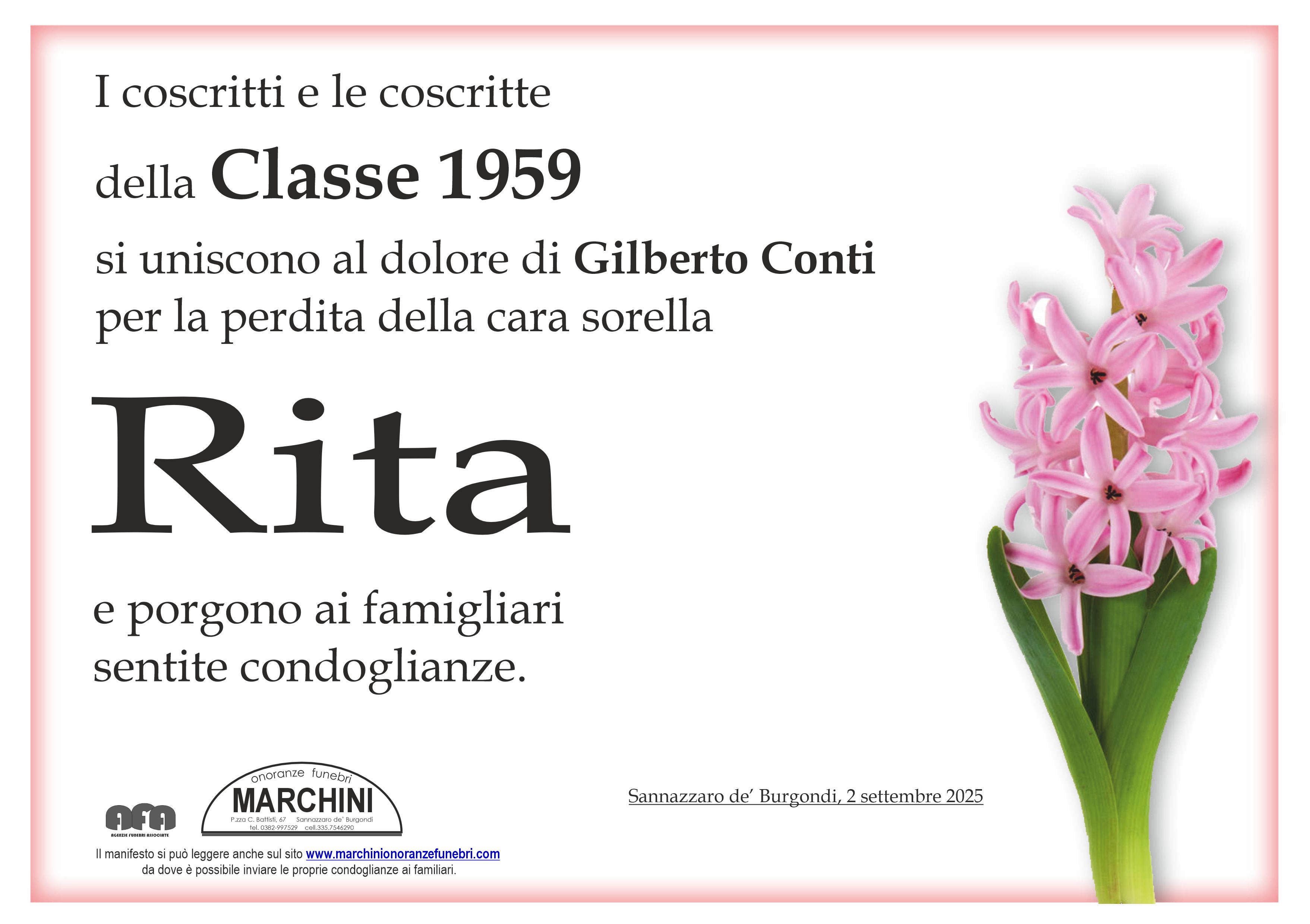 In questo momento di profondo dolore, vi porgo le più sincere condoglianze. Rita Bermani