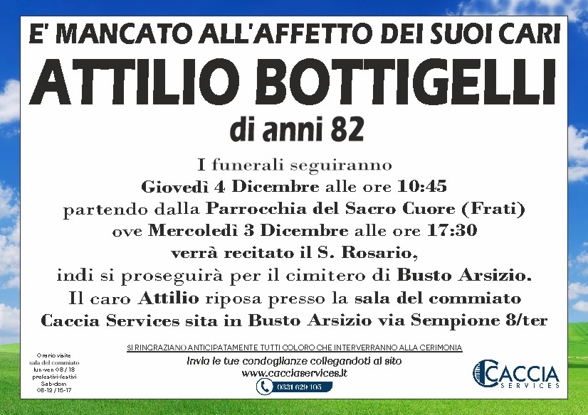 Home page \ I necrologi \ ATTILIO BOTTIGELLI
