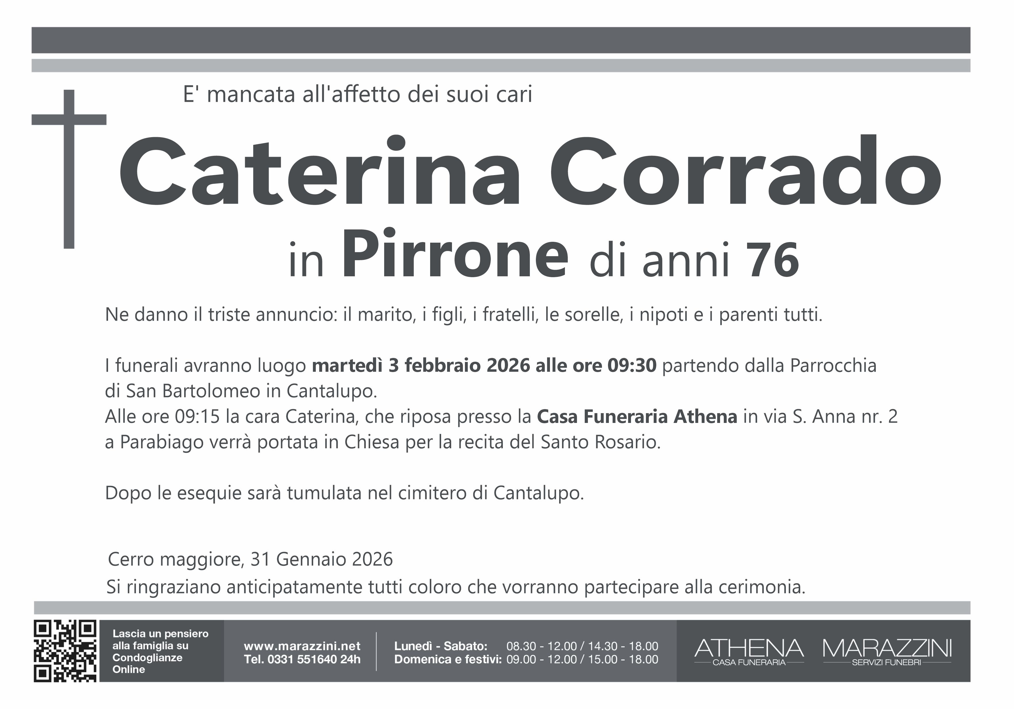 Home page \ I necrologi \ CATERINA CORRADO