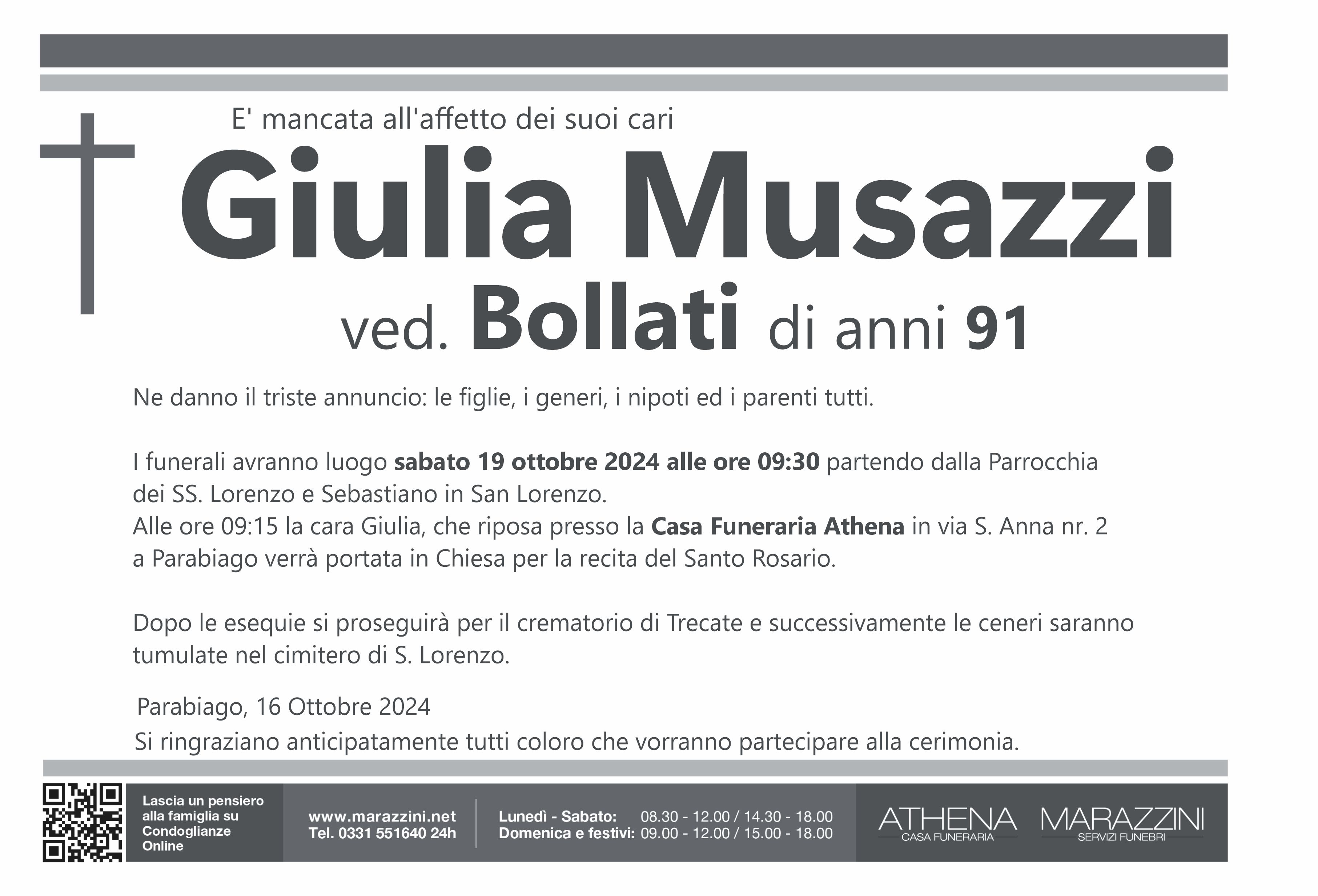 Home page \ I necrologi \ GIULIA MUSAZZI