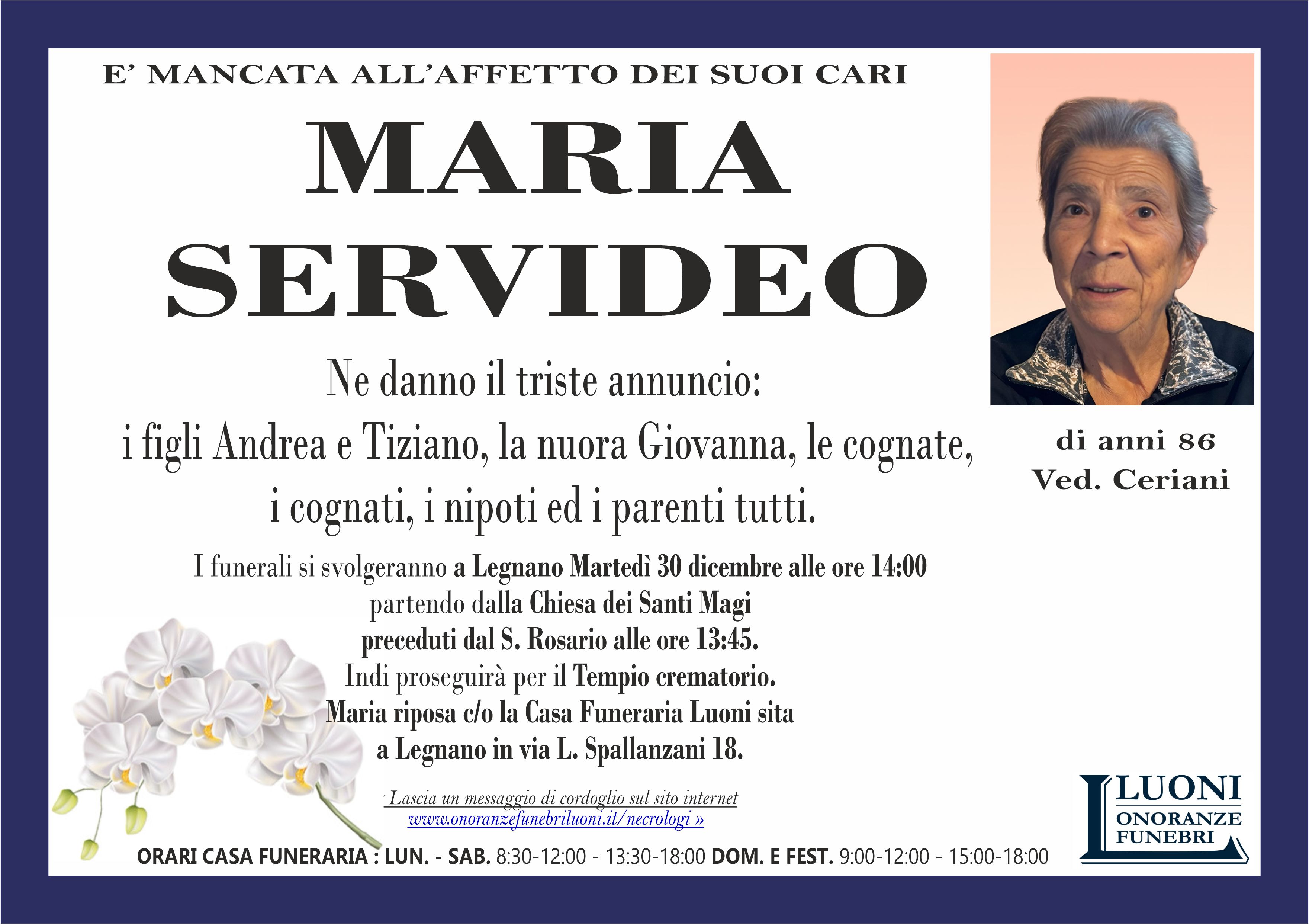 Home page \ I necrologi \ MARIA SERVIDEO